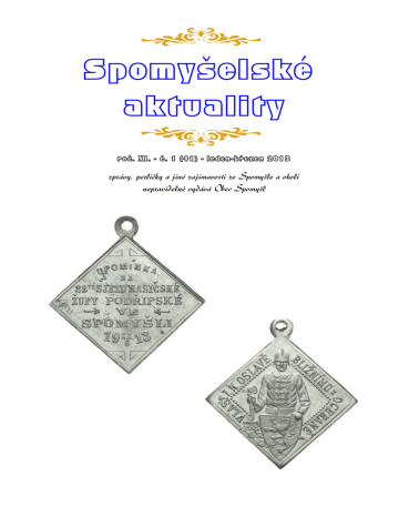 OÚ 315 691 143 PSČ 277 05 http://www.spomysl.cz Vážení a milí spoluobčané, chci vám přiblížit některé akce a události, které by Vás mohly zajímat ….. Rekonstrukce Obecního úřadu V součastné době, jak jistě mnozí z vás již ví, probíhá rekonstrukce Obecního úřadu. Oprava prvního patra, schodiště a chodby je již ukončena. Zednické práce včetně pokládky plovoucí podlahy, dlažby, obkladů a sociálního zařízení stály 572.707,50 Kč včetně DPH. Nové elektrorozvody stály 70.053,- Kč včetně DPH. Nyní probíhá rekonstrukce kanceláře a kuchyňky. Stavební parcely na poli Městský úřad Mělník nám dne 9.1.2013 vydal územní rozhodnutí pro výstavbu plánovaných stavebních parcel. Nyní čekáme na dodání projektové dokumentace, abychom mohli požádat o stavební povolení. Provoz kanalizace obce Jeviněves Obci Jeviněves byl provoz kanalizace povolen do zkušebního provozu na jeden rok. Zahájení provozu je od 26.února 2013. V podmínkách provozu máme stanoveno, že požadujeme odečet měřidla 1x měsíčně, aby se dalo zjistit, že měřidlo správně měří. Dále požadujeme napojení GS brány na jeden mobilní telefon, který nám má hlásit poruchy provozu, výpadek elektrického napětí a odpojení měřidla od elektrického vedení. Napojení na telefon zatím nebylo provedeno. Provoz čerpacích stanic a ČOV obce Spomyšl Dne 6.2.2013 byla provedena úprava čerpací stanice na ,,Parlamentu“. Důvodem byla velmi špatná funkčnost, neboť v této čerpačce se opakovaně nacházely předměty, které do kanalizačního řádu nepatří a čerpadla by za stávajících podmínek tento stav nevydržela. Za tuto úpravu bylo zaplaceno 19.500,- Kč bez DPH. Dále byla téhož dne snížena hladina plováku na čerpací stanici u ČOV. Tam bylo zjištěno, že plováky byly nastaveny na kapacitu 1000 EO, což v součastné době zdaleka nemáme. Také bylo opraveno míchadlo na ČOV. Tyto opravy stály 21.928,- Kč bez DPH. Hasičský dům 15.února byl od projektanta předložen vypracovaný návrh na rekonstrukci Hasičského domu k připomínkování našim hasičům. Informace pro občany: Úprava známek na popelnice Jelikož cena za uložení komunálního odpadu stále stoupá a poplatek na občana nechceme prozatím zvyšovat, bylo dohodnuto, že od II. pololetí letošního roku musí být na popelnice o objemu 120 litrů vylepena jedna samolepící známka (jako dosud) a na popelnice objemu 240 litrů dvě známky (novinka). Od srpna letošního roku popeláři nebudou vyvážet popelnice, které nebudou řádně označeny. Pokud někdo bude potřebovat více samolepek, než kolik má zaplaceno, musí si potřebné množství dokoupit. Sepsáno ke dni 26.března 2013. starostka obce -- OÚ 315 691 143 PSČ 277 05 http://www.spomysl.cz K vyobrazení na titulní straně: Spomyšelští dobrovolní hasiči byli v počátcích své existence pověřeni vedením Hasičské župy Podřipské uspořádáním jejího 28.sjezdu. Termín slavnosti byl určen na 22.červen 1913. K této události byla vydána vyobrazená medailka, vůbec první známá ražba s domicilem naší obce. Po celý tento rok nás budou doprovázet obrázky Mikoláše Alše připomínající měsíce roku. Obrázky jsou více než sto let staré. Prosincové sněhové nadílky a ledovku, která nás překvapila svou intenzitou a razancí, z velké části v obci likvidoval pan Miroslav Bureš. Na snímku ze dne 22.prosince 2012 vidíte jeho syna Petra při zametání chodníku v ulici V Chaloupkách. V neděli 6.ledna 2013 procházeli naší obcí tři králové, aby společně s dalšími tříkrálovými akcemi v celé České republice pomohli touto formou vybrat finanční prostředky pro děti, tolik potřebné tam, kde se jich nedostává. Na slavnostní zahájení, které se konalo den předtím, odjela do Prahy tři děvčata – Anna a Barbora Horáčkovy a Natálie Srbová v doprovodu paní Ilony Horáčkové, od níž pochází připojené snímky. A jak akce probíhala? Zkráceně: Po příjezdu do Prahy se děvčata převlékla do kostýmů, pak v Arcibiskupském paláci dostala spolu se všemi ostatními občerstvení a přesunula se do Svatovítského chrámu, kde jim byly arcibiskupem Dukou1 vysvěceny křídy a spomyšelská děvčata spolu s děvčaty z arcidiecéze v Neratovicích přečetla tzv.přímluvy. Poté se začal na nádvoří Arcibiskupského paláce řadit tříkrálový průvod s králi na velbloudech. Naše děvčata šla, opět spolu s ostatními, za „prostým“ lidem, a to z Hradčanského náměstí k živému Betlému na Loretánské náměstí. Tam došlo k odevzdání královských darů Ježíškovi. Děvčata přivezla z Prahy do Spomyšle posvěcené křídy, kterými pak byly psány 2 nápisy na dveře nebo vrátka u domů, jejichž majitelé otevřeli, vyslechli si koledu a podle svých možností přispěli do sbírky. Protože dochází k postupné „generační“ obměně našich koledníků (rozuměj spomyšelských), změnilo se, v porovnání Děvčata kráčejí ulicemi Prahy z parkoviště do Arcibiskupského paláce. s loňskou akcí, „tříkrálové“ obsazení v obci. Jako krále jsme mohli před svými domy nebo v domácnostech přivítat Nelu Cibulkovou (M), Anetu Plickovou (K) a Adama Bendu (B)3, dospělý doprovod zajišťoval Leoš Denk. Podle údaje z neratovické arcidiecéze bylo ve Spomyšli vybráno 10 260 Kč. 1 2 3 ThLic. Dominik kardinál Duka OP (občanským jménem Jaroslav Duka); 36.arcibiskup pražský a primas český (jmenován 13. února 2010). – (zdrojem tohoto odkazu i obou dalších je cs.wikipedia.org) V katolických zemích se o svátku Zjevení Páně 6.ledna) píše posvěcenou křídou na dveře domů a chlévů zkratka K † M † B † nebo latinský ekvivalent C † M † B † jako formule požehnání. Místo českého K se použ