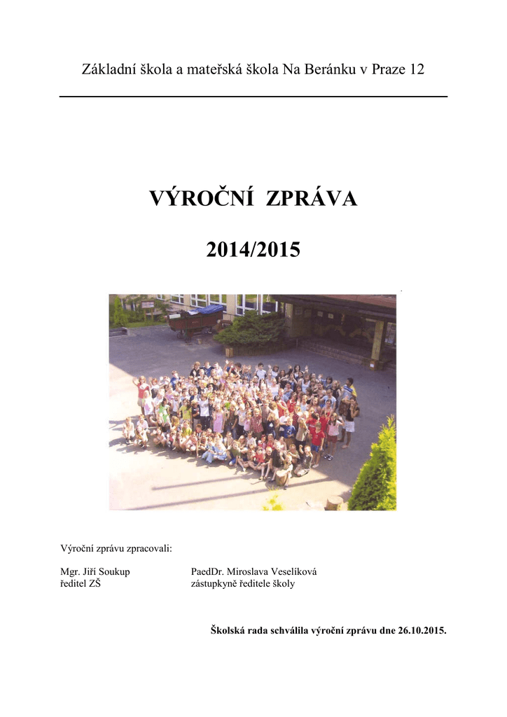 VÝROČNÍ ZPRÁVA 2014/2015 - ZŠ a MŠ Na Beránku v Praze 12