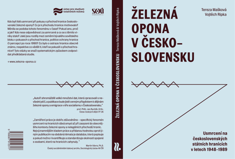 → www.zelezna-opona.cz „Autoři shromáždili velké množství dat, která zpracovali s nevšední péčí, a publikace bude jistě cenným příspěvkem k dějinám železné opony a emigrace v éře socialismu v Československu.“ prof. PhDr. Jan Rychlík, DrSc. Ústav českých dějin FF UK 9 788087 912317 „Zaměření práce je dobře zdůvodněno – specifický fenomén usmrcení na hranicích dává smysl až při zasazení do obecnějšího kontextu železné opony a nelegálních přechodů hranic. Nejvýznamnějším kladem práce a přidanou hodnotou oproti jiným publikacím na obdobná témata je databáze, která popisuje a pokud možno i kvantifikuje a standardizuje okolnosti spojené s osobami, které na hranicích zahynuly. “ Martin Vávra, Ph.D. Český sociálněvědní datový archiv, Sociologický ústav AV ČR Tereza Mašková & Vojtěch Ripka ŽELEZNÁ OPONA V ČESKOSLOVENSKU Kdo byli lidé usmrcení při pokusu o přechod hranice československé železné opony? Co je k přechodu hranice motivovalo? Měnila se podoba tohoto fenoménu v čase? Pokud ano, proč a jak? Kdo nese odpovědnost za usmrcené a co se s těmito viníky stalo? Jaké jsou rozdíly mezi zeměmi bývalého sovětského bloku v pokusech o přechod hranice, politice ochrany hranice či percepci po roce 1990? Co bylo o ostraze hranice obecně známo, respektive co věděli ti, kteří se pokusili o přechod hranice? Tyto otázky se snaží systematickým způsobem zodpovídat předkládaná studie. ŽELEZNÁ OPONA V ČESKOSLOVENSKU Tereza Mašková Vojtěch Ripka Usmrcení na československých státních hranicích v letech 1948-1989 3 4 Úvod Projekt Dokumentace usmrcených osob na československých státních hranicích v letech 1948 až 1989 byl v Ústavu pro studium totalitních režimů (ÚSTR) spuštěn v roce 2009, aby zprostředkoval laické i odborné veřejnosti jak konkrétní osudy lidí, kteří zahynuli při pokusu o překonání železné opony,1 tak obecné principy ostrahy československé státní hranice ve druhé polovině 20. století. Část výstupů projektu je dostupná na jeho webové stránce,2 kde se kromě krátké studie, jež přináší základní vhled do problematiky, nachází také glosář s klíčovými hesly, biogramy 80 usmrcených osob včetně výběru archivních materiálů, mapové podklady ke zdokumentovaným incidentům aj., viz obrázek 1 (s. 5). Předkládaná studie syntetizuje dosavadní zkoumání v oblasti československých hraničních incidentů v letech 1948 až 1989. Je rovněž pokusem o celostní analýzu fenoménu usmrcených na hranicích a přináší také inspiraci z obdobných zahraničních výzkumů. V neposlední 1 Železnou oponou se obecně rozumí hranice mezi Západem a Východem. Součástí projektu jsou však i případy úmrtí na hranici Československa s NDR (tj. v letech 1948–1949 před vznikem NDR) a se sovětskou okupační zónou (v tomto případě máme na mysli hranici v letech 1948–1955). V analytické části práce používáme termíny „socialistická“ a „kapitalistická“ hranice, které pocházejí z dobových statistik, a proto jsou psány v uvozovkách. 2 Tento dokumentační projekt je dostupný na webových stránkách Ústavu pro studium totalitních režimů. Dokumentace usmrcených na československých státních hranicích 1948–1989, www.ustrcr.cz/cs/dokumentace-usmrcenych-statni-hranice (citováno k 1. 7. 2015). 5 6 řadě představuje sadu dat k hraničním incidentům zdokumentovaným Ústavem pro studium totalitních režimů a statistické vyhodnocení. Datová sada obsahuje údaje k cca 270 usmrceným osobám. Od dosavadního zpracování tématu se studie liší systematickým přístupem, kdy explicitně popisujeme metodologický rámec a otevíráme ho kritice a přezkoumání. Zřetelně definujeme souvislost mezi konkrétními, jednotlivými případy a zkoumaným fenoménem. Studie hledá odpověď na tyto základní otázky: Kdo byli lidé usmrcení při pokusu o přechod hranice? Jakou měli k přechodu hranice motivaci? Jedná se o stabilní, nebo proměnlivý fenomén (v případě proměnlivého – co způsobuje jeho dynamiku)? Kdo nese za usmrcené odpovědnost a co se s těmito viníky stalo? Jaké jsou rozdíly mezi zeměmi bývalého sovětského bloku (v pokusech o přechod hranice, politice ochrany hranice či percepci po r. 1990)? V čem se lišily jednotlivé útvary Pohraniční stráže, respektive nakolik jsou usmrcení na hranicích komplexním fenoménem Pohraniční stráže a nakolik na něj měli vliv velitelé jednotek atd.? Co bylo o ostraze hranice obecně známo, respektive co věděli ti, kteří se pokusili o přechod hranice? První, obecná část studie se skládá ze tří kapitol (Metodologický rámec, Stav výzkumu a Vyšetřování hraničních incidentů po roce 1989), jež se zabývají cestovními pasy a povoleními k vycestování v kontextu poválečného Československa, hraničními a zakázanými pásmy a vystěhováním odtamtud, respektive přesídlováním a demolicemi, Pohraniční stráží a ostrahou hranice, emigračními vlnami a v neposlední řadě vyšetřováním hraničních incidentů v devadesátých letech 20. století. Druhá, analytická část (kapitola Usmrcení — analýza) představuje sadu dat včetně metody jejího zpracování a přináší analýzu výsledků. Ze zkoumané datové sady byly předem vyřazeny osoby, u nichž se prokázalo, že zemřely bez přímé souvislosti s přechodem hranice, respektive byl u nich vyloučen úmysl přechodu hranice (osoby, u kterých se úmysl nepodařilo vyloučit ani vyvrátit, byly v databázi ponechány). Kapitola Usmrcení – analýza je soustředěna do osmi částí, které zkoumají zejména charakteristiku několika období, do nichž jsme periodu 1948 – 1989 rozčlenili, geografické údaje (např. vzdálenost mezi místy incidentu a bydli