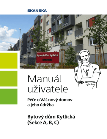 Manuál uživatele Péče o Váš nový domov a jeho údržba Bytový dům Kytlická (Sekce A, B, C) Za společnost Skanska a.s. (dále jen „Skanska”) Vás vítáme ve Vašem novém domově. Abychom Vám pomohli rychleji se zabydlet, připravili jsme tento Manuál uživatele – „Péče o Váš nový domov a jeho údržba“ (dále jen „jednotka“). 2 Manuál uživatele – Péče o vaši bytovou či nebytovou jednotku a její údržba Prosíme, seznamte se s obsahem tohoto manuálu uživatele. Pro usnadnění orientace je před začátkem kapitoly 1 vložen obsah. Cílem společnosti Skanska je poskytovat všem vlastníkům jednotek vysokou jakost, spolehlivé služby a zajišťovat vyřízení veškerých oprávněných záručních oprav. Společnost Skanska má uzavřenou Pojistnou smlouvu, která se vztahuje na stavební části v rámci společných prostor budovy, na stavební části a nemovité zařízení uvnitř každého bytu, nebytové jednotky či garáže. Nepokrývá však ztráty nebo škody vztahující se k movitému zařízení, nábytku a vybavení uvnitř každé jednotky. Společnost Skanska Vám doporučuje, abyste si co nejdříve po nastěhování dojednali schůzku se zástupcem pojišťovny a pojistili si vybavení a další náležitosti ve Vaší jednotce. Pokud jste si při nákupu Vaší jednotky zajistili financování prostřednictvím hypotéky, doporučujeme Vám, abyste podmínky pojištění požadované Vaší smlouvou o hypoteční půjčce konzultovali předem se zástupcem své banky. V případě, že Vaše jednotka utrpí ztráty nebo škody na majetku, prosíme, co nejdříve kontaktujte správce majetku Vaší budovy. Tato osoba Vám může pomoci zajistit schůzku se zástupcem pojišťovny, prohlídku Vaší jednotky a při nejbližší příležitosti uplatnění nároku na náhradu ohlášené škody. Vašeho správce majetku lze zastihnout následujícím způsobem: Váš správce majetku: AUSTIS a.s. Se sídlem: Sídlo provozovny „Správa nemovitostí“: Zastoupena ředitelem: IČ: DIČ: Bankovní spojení: Číslo účtu provozovny: Vedený: Praha 5, K Austisu 680 Praha 8, Nekvasilova 2 Ing. Jiřím Hampejsem 00550655 CZ0550655 UniCredit Bank 1331585175/2700 obchodní rejstřík Městského soudu v Praze, odd. B, vložka 9026 Konkrétní osobní kontakty jsou uvedeny na nástěnce ve Vašem domě a také v příloze č. 1 tohoto Manuálu uživatele. Při přípravě tohoto Manuálu uživatele se společnost Skanska snažila předpokládat nejčastěji pokládané dotazy obyvatel a zodpovědět je předem. Nicméně je pravděpodobné, že existují specifické otázky, které se v tomto manuálu zodpovědět nepodaří, a proto pokud zde odpověď na svůj problém nenaleznete, můžete kontaktovat Středisko záručních závazků společnosti Skanska, kde obdržíte další doplňující informace. Prosíme, své dotazy směrujte na: Středisko záručních závazků Skanska a.s. Konkrétní osobní kontakty jsou uvedeny na nástěnce ve Vašem domě a také v příloze č. 1 tohoto Manuálu uživatele. Děkujeme Vám za zakoupení Vaší jednotky od společnosti Skanska. Doufáme, že se Vám Vaše bydlení bude líbit. Pokud bude existovat jakýkoli další způsob, kterým bychom mohli přispět k Vaší stálé spokojenosti s Vaší jednotkou, prosíme, neváhejte se s námi spojit. 3 Manuál uživatele Péče o Vaši bytovou či nebytovou jednotku a její údržba Obsah: 4 1. Informace o službách pro zákazníky 1.1 1.1.1 1.1.2 1.2 1.2.1 1.2.2 1.2.3 Kapitola: Zásady týkající se Vaší záruky Stavební závady a nedodělky Následné škody 1.3 1.3.1 1.3.2 1.3.3 Kapitola: Informace o klíčích Důležité informace o klíčích od jednotky Důležité informace o klíčích od společných prostor v domě Postup při ztrátě klíčů od společných prostor v domě 1.4 1.4.1 1.4.2 1.4.3 1.4.4 1.4.5 1.4.6 Kapitola: Převzetí Vaší jednotky Prohlídka Vaší jednotky Sestavování seznamu zjištěných závad a nedodělků Převzetí Vaší jednotky Odstraňování závad Poučení o tom, jak nakládat se zařízením Vaší jednotky Stěhování se do Vaší jednotky 1.5 1.5.1 1.5.2 1.5.3 Kapitola: Standardní postupy při vyžadování záručních oprav Objednávání oprav v záruční době Organizace doby provádění oprav Potvrzení provedené opravy 1.6 1.6.1 1.6.2 1.6.3 1.6.4 1.6.5 1.6.6 Kapitola: Provádění stavebních prací a úprav po převzetí jednotky Pravidla pro provádění stavebních prací ve Vašem domě Instalace v kuchyni a koupelně, neprováděné společností Skanska Stavební omezení v rámci každé jednotky Normální pracovní doba pro stavební činnost Provedení dodatečných stavebních prací Záruka za dodatečné stavební práce 1.7 1.7.1 1.7.2 1.7.3 1.7.4 1.7.5 Kapitola: Správa a provoz domu-budovy Správce majetku Parkovací možnosti a používání garáže/í Přístup do garáže Výtahy Odstraňování a likvidace domovního odpadu Kapitola: Postup při požadování odstranění naléhavých oprav Vyžádání naléhavých oprav a služeb Koho přivolat v případě naléhavých oprav po pracovní době Typické problémy, které vyžadují naléhavé opravy Manuál uživatele – Péče o vaši bytovou či nebytovou jednotku a její údržba 2. Doporučení pro péči a údržbu jednotky 2.1 2.1.1 2.1.2 2.1.3 2.1.4 Kapitola: Závazky týkající se údržby Co vlastníte Vy osobně a co vlastníte společně s dalšími vlastníky Měřicí přístroje a hlavní rozvodné panely Udržování výrobků a vnitřního prostředí Vaší jednotky Při údržbě společných prostor se od Vás očekává 2.2 2.2.1 2.2.2 2.2.3 2.2.4 Kapitola: Specifikace některých stavebních prvků Odvodnění střech a okapové žlaby Balkony, lodžie a terasy Okna a balkónové dveře Zámečnické prvky 2.3 2.3.1 2.3.2 2.3.3 2.3.4 2.3.5 2.3.6 2.3.7 2.3.8 2.3.9 2.3.10 Kapi