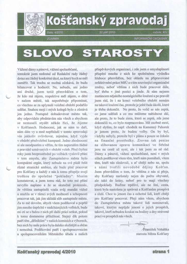 Košťanský zpravodaj – říjen 2010