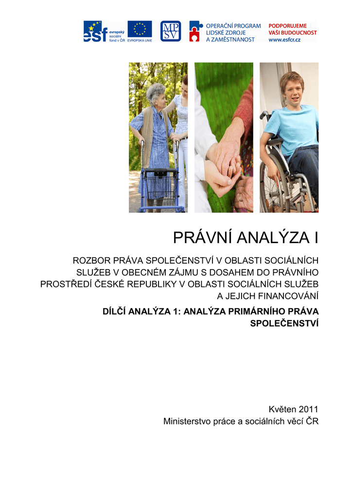 PRÁVNÍ ANALÝZA I ROZBOR PRÁVA SPOLEČENSTVÍ V OBLASTI SOCIÁLNÍCH SLUŽEB V OBECNÉM ZÁJMU S DOSAHEM DO PRÁVNÍHO PROSTŘEDÍ ČESKÉ REPUBLIKY V OBLASTI SOCIÁLNÍCH SLUŽEB A JEJICH FINANCOVÁNÍ DÍLČÍ ANALÝZA 1: ANALÝZA PRIMÁRNÍHO PRÁVA SPOLEČENSTVÍ Květen 2011 Ministerstvo práce a sociálních věcí ČR PRÁVNÍ ANALÝZA I 287452 EUNA ERA 01 01 P:\Prague-Purkynova\EUF\Projects\287452 Analysis Social SGEI\55 Výstupy\Vypoř_DA01az03\DA1 06 April 2011 ROZBOR PRÁVA SPOLEČENSTVÍ V OBLASTI SOCIÁLNÍCH SLUŽEB V OBECNÉM ZÁJMU S DOSAHEM DO PRÁVNÍHO PROSTŘEDÍ ČESKÉ REPUBLIKY V OBLASTI SOCIÁLNÍCH SLUŽEB A JEJICH FINANCOVÁNÍ DÍLČÍ ANALÝZA 1: ANALÝZA PRIMÁRNÍHO PRÁVA SPOLEČENSTVÍ Květen 2011 Ministerstvo práce a sociálních věcí ČR Na Poříčním právu 376/1, 128 01 Praha 2, Česká republika PRÁVNÍ ANALÝZA I – Dílčí analýza 1: Analýza primárního práva Společenství Obsah Kapitola Název Seznam zkratek a definic Strana i Seznam relevantní judikatury ESD a SPI iii Seznam zdrojů (aktuální výběr) xi Předmluva xiii Manažerský souhrn xiv 1. Veřejná podpora EU – definiční znaky a výjimky 1 2. Zvláštní režim služeb obecného hospodářského zájmu 7 3. Základní otázky a odpovědi – primární právo EU pro SGEI se zaměřením na SSGI 19 4. Primární právo EU v oblasti SGEI po Lisabonské smlouvě 26 PRÁVNÍ ANALÝZA I – Dílčí analýza 1: Analýza primárního práva Společenství Seznam zkratek a definic Altmarský balíček společné označení pro dokumenty Rámec SGEI, Rozhodnutí SGEI, Novelizace Směrnice o průhlednosti vydané ze strany EK v roce 2005 Amsterdamská smlouva mezinárodní smlouva mezi členskými zeměmi EU, která změnila a přečíslovala Smlouvu o EU a Smlouvu o ES (podepsána 2. října 1997 a nabyla účinnosti 1. května 1999) ČR ESD Česká republika Evropský soudní dvůr ES Evropské společenství EU Evropská unie FS Fond soudržnosti EK Evropská komise jako orgán EU Komise Evropská komise jako orgán EU Charta základních práv občanů EU dokument upřesňující základní práva občanů Evropské unie, který byl přijat jako součást Lisabonské smlouvy Koncesní zákon zákon č. 139/2006 Sb., o koncesních smlouvách a koncesním řízení(koncesní zákon), ve znění pozdějších předpisů Lisabonská smlouva mezinárodní smlouva mezi členskými zeměmi EU, jejímž cílem bylo především reformovat instituce Evropské unie a její fungování (podepsána 13. prosince2007 v Lisabonu, ratifikována 3. listopadu2009 a nabyla účinnosti1. prosince 2009 MF Ministerstvo financí Nařízení o veřejných dopravních službách Nařízení Evropského parlamentu a Rady (ES) č. 1370/2007 ze dne 23. října 2007 o veřejných službách v přepravě cestujících po železnici a silnici a o zrušení nařízení Rady (EHS) č. 1191/69 a č. 1107/70 Nová Směrnice o průhlednosti finančních vztahů Směrnice Komise 2006/111/ESze dne 16. listopadu 2006o zprůhlednění finančních vztahů mezi členskými státy a veřejnými podniky a o finančníprůhlednosti uvnitř jednotlivých podniků Novelizace Směrnice o průhlednosti finančních vztahů Směrnice Komise 2005/81/ES ze dne 28. listopadu 2005, kterou se mění směrnice 80/723/EHS o zprůhlednění finančních vztahů mezi členskými státy a veřejnými podniky a o finanční průhlednosti uvnitř určitých podniků Pracovní dokument Komise o SGEI Pracovní dokument Komise: Použití pravidel veřejné podpory EU na služby obecného hospodářského zájmu od roku 2005 a Výsledek veřejné konzultace ze dne 23.3.2011, SEK(2011) 397 Příručka o SGEI Pracovní dokument Komise: Příručka o používání pravidel Evropské unie pro státní podpory, veřejné zakázky a vnitřní trh v oblasti služeb obecného hospodářského zájmu, zejména sociálních služeb obecného zájmu ze dne 7.12.2010, SEK(2010) 1545 v konečném znění PPP partnerství veřejného a soukromého sektoru (angl. Public Private Partnership) Rakouská studie o SGEI Eilmansberger, T., Herzig, G.: Social Services of General Interest (SSGI). Study commissioned by the Federál Ministry of Social Affairs and Consumer Protection 2008. Bundesministerium für Arbeit, Soziales und Konsumentenschutz and Universität Salzburg. Salzburg, June 2008 Rámec SGEI Rámec Společenství pro státní podporu ve formě vyrovnávací platby za závazek veřejné služby (2005/C 297/04) Rozsudek Altmark Rozsudky ve věci C-280/00 Altmark Trans GmbH a Regierungspräsidium Magdeburg v. Nahverkehrsgesellschaft Altmark GmbH ("Altmark") [2003] Sb. rozh. I-7747 a ve spojených věcech C-34/01 až C-38/01 Enirisorse SpA v. Ministero delle Finanze [2003] Sb. rozh. I-14243 i PRÁVNÍ ANALÝZA I – Dílčí analýza 1: Analýza primárního práva Společenství Rozhodnutí SGEI Rozhodnutí Komise 2005/842/ES ze dne 28. listopadu 2005 o použití čl. 86 odst. 2 Smlouvy o ES na státní podporu ve formě vyrovnávací platby za závazek veřejné služby poskytované určitým podnikům pověřeným poskytováním služeb obecného hospodářského zájmu (2005/L 320/67) Sdělení Komise o reformě SGEI Sdělení Komise Evropskému parlamentu, Radě, Evropskému hospodářskému a sociálnímu výboru a Výboru regionů, Reforma pravidel státní podpory EU pro služby obecného hospodářského zájmu ze dne 23.3.2011, KOM(2011) 146 v konečném znění Sdělení Komise o sociálních SGEI SDĚLENÍ KOMISE EVROPSKÉMU PARLAMENTU, RADĚ, EVROPSKÉMU HOSPODÁŘSKÉMU A SOCIÁLNÍMU VÝBORU A VÝBORU REGIONŮ doprovázející sdělení „Jednotný trh pro Evropu ve 21. století“ Služby obecného zájmu, včetně sociálních služeb obecného zájmu: nový evropský závazek {KOM(2007) 724 v konečném znění} {SEK(2007) 1514} {SEK(2007) 1515} {SEK(2007) 1516} SFEU Smlouva o fungování Evropské unie SGEI služby obecného hos
