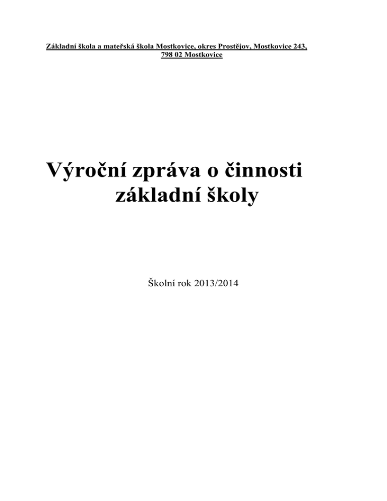Výroční zpráva 2013-2014 - Základní a mateřská škola Mostkovice