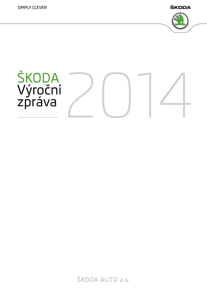 ŠKODA Výroční zpráva 2014 ŠKODA AUTO a.s. Obsah 4 Úvodní slovo Zpráva představenstva 8 Profil společnosti ŠKODA AUTO 9 Správa a řízení 9 Zpráva dozorčí rady 10 Orgány společnosti ŠKODA AUTO 12 P rohlášení o souladu s Kodexem správy a řízení společností 13 Podnikatelská činnost 13 14 15 16 18 19 20 24 28 30 Strategie Produktové portfolio Přehled vývoje na automobilovém trhu Finanční situace společnosti ŠKODA AUTO Technický vývoj Nákup Výroba a logistika Prodej a marketing Řízení lidských zdrojů Udržitelnost 34 Zpráva o řízení rizik 34 Systém řízení rizik 37 Výhled 37 Krátkodobý a dlouhodobý výhled 39 Hlavní události roku 2014 Finanční část 44 Zpráva auditora k výroční zprávě 46 Zpráva auditora k samostatné účetní závěrce 48 Samostatná účetní závěrka za rok končící 31. prosince 2014 52 Příloha k samostatné účetní závěrce 2014 110 Zpráva o vztazích 117 Přehled vybraných pojmů a zkratek 119 Osoby odpovědné za výroční zprávu a události po datu účetní závěrky 120 Klíčová data a finanční výsledky v přehledu Výroční zpráva 2014 3 Úvodní slovo rok 2014 byl pro společnost ŠKODA AUTO velmi úspěšný a Společnost v něm dosáhla nových rekordních výsledků. Pokračovali jsme v naší modelové ofenzívě a poprvé v téměř 120leté historii jsme během jediného roku vyrobili a dodali více než jeden milion vozů zákazníkům po celém světě, čímž jsme docílili nového milníku ve vývoji naší značky. Po 23 letech od svého vstupu do koncernu Volkswagen si ŠKODA tímto úspěchem zajistila stálou pozici v objemových segmentech celosvětového trhu s automobily. Podařilo se také docílit nových rekordních hodnot obratu a provozního zisku. Výsledky dosažené v roce 2014 dokládají významnou sílu značky ŠKODA a vysokou míru oblíbenosti našich vozů. Výsledky nejrozsáhlejší modelové ofenzívy v historii naší Společnosti jsou stále hmatatelnější. V průběhu uplynulých čtyřech let jsme omladili produktové portfolio a rozšířili jej do nových segmentů. Se sedmi modelovými řadami a více než 40 variantami modelů tak v současnosti nabízíme nejatraktivnější nabídku vozů v historii značky ŠKODA, která zahrnuje vše od městského vozu ŠKODA Citigo až po vlajkovou loď, model ŠKODA Superb. Prof. Dr. h.c. Winfried Vahland předseda představenstva 4 Výroční zpráva 2014 Po vytyčené cestě budeme i nadále pokračovat stejně rychlým tempem. Pro rok 2014 jsme nastavili jasný kurz. Designová studie ŠKODA VisionC byla v minulém roce jednou z hvězd ženevského autosalonu a předznamenala nový, moderní a emocionálnější designový jazyk značky. Prvním sériovým vozem, který využívá prvky nového designového jazyka, je nová generace modelu ŠKODA Fabia, našeho svěžího a stylového malého vozu, který slaví úspěchy u zákazníků po celém světě. Trvalý úspěch společnosti ŠKODA AUTO by nebyl možný bez vysoké odbornosti a nepolevujícího nasazení našich zaměstnanců, kterých je takřka 25 000. Bezprecedentní rychlost, se kterou jsme v posledních letech stíhali konkurenci, je společným úspěchem celého týmu ŠKODA. Ve všech oblastech Společnosti, ať už jde o vývoj či prodej, výrobu a administrativu či design a motorsport, sdílejí lidé, kteří pro Společnost pracují, zapálení pro značku ŠKODA a jsou odhodlaní udělat vše pro její úspěch. Firemní růst vyžaduje nové modely. Bezkonkurenčně nejdůležitější novinka tohoto roku - nová generace modelu ŠKODA Superb, nejlepší vůz ŠKODA všech dob - bude na trh uvedena již velmi brzy. Naše nová vlajková loď je začátkem nové éry značky ŠKODA. Tento vrcholný model se předvede ve zcela nové podobě s designem, který je pro značku ŠKODA revolucí. Ve svém segmentu nabídne nejprostornější interiér, postavený na základě inovativní techniky MQB koncernu Volkswagen. Značku ŠKODA představí novým skupinám zákazníků, navýší její tržní podíl a upevní její pozici na globálních trzích. Očekáváme, že nový model ŠKODA Superb zaznamená úspěch jak u dynamicky orientovaných soukromých zákazníků, tak i u firemních a fleetových zákazníků. Bude tak ztělesněním naší ambice k růstu, ale i celkového směřování celé značky do budoucnosti. Je patrné, že společnost ŠKODA AUTO si klade stále vyšší cíle a má v plánu umístit modely špičkových kvalit na vrcholy příslušných segmentů. Všeobecně známé hodnoty značky ŠKODA, ke kterým patří funkčnost, prostornost a výjimečný poměr mezi cenou a užitnou hodnotou, jsou navíc podpořeny ještě lepšími technickými vlastnostmi nových vozů. Záměrem společnosti ŠKODA AUTO je nabízet nejlepší vozy v dané třídě, vozy, které vynikají vysokou užitnou hodnotou i odkazem na bohatou historii značky, ale které zároveň představují její zacílení na budoucnost a které se zaslouží o zvýšení její popularity. Společnost ŠKODA AUTO se vyvíjí správným směrem. Musíme se vypořádat s nelehkou situací na trzích a zmírňovat následky různých krizí. Naše sebedůvěra však staví na solidních základech. V těsné spolupráci s koncernem Volkswagen, vedoucím výrobcem automobilů v Evropě, s novými modely a špičkovým týmem, budeme i v budoucnosti dále pracovat na úspěchu naší značky. Váš Prof. Dr. h.c. Winfried Vahland předseda představenstva Výroční zpráva 2014 5 6 Výroční zpráva 2014 Zpráva představenstva 8 Profil společnosti ŠKODA AUTO 9 Správa a řízení 9 10 12 Zpráva dozorčí rady Orgány společnosti ŠKODA AUTO Prohlášení o souladu s Kodexem správy a řízení společností 13 Podnikatelská činnost 13 14 15 16 18 19 20 24 28 30 Strategie Produktové portfolio Přehled vývoje na automob