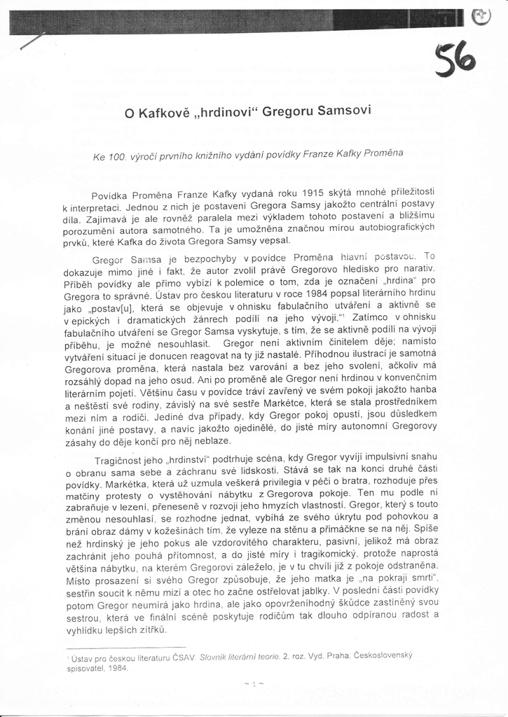 o Kafkově ,,hrdinovi" Gregoru Samsovi
