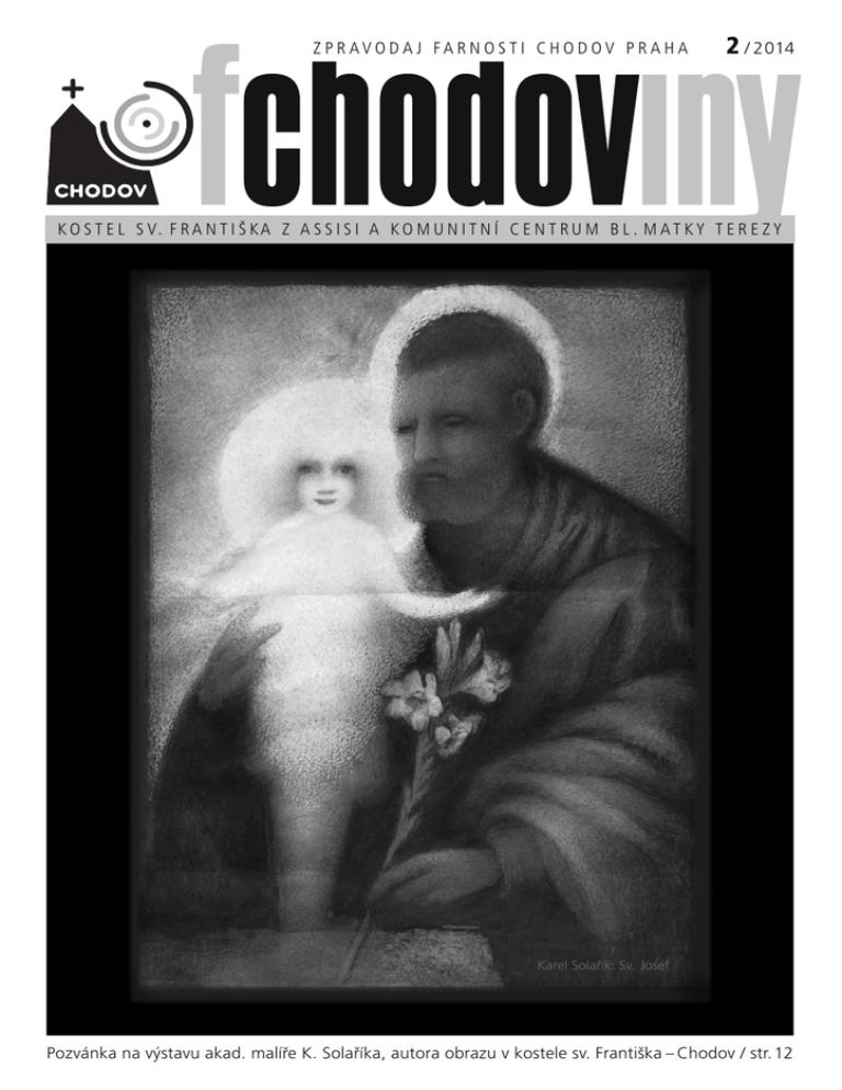 fchodoviny ZPRAVODAJ FARNOSTI CHODOV PRAHA 2 / 2014 K O S T E L S V. F R A N T I Š KA Z A S S I S I A K O M U N I T N Í C E N T R U M B L . M A T K Y T E R E Z Y Karel Solařík: Sv. Josef Pozvánka na výstavu akad. malíře K. Solaříka, autora obrazu v kostele sv. Františka – Chodov / str. 12 2 Ž IVOT ZPRAVODAJ FARNOSTI CHODOV FA R N O S TI FCHODOVINY Ú VODEM 3 Jo, jo, zase Valentýn, to nebude k vydržení... Chtěl bych dnes napsat především manželům, ale ne jenom jim, a k něčemu je pozvat. Přijde vám podivné to, co se z toho čtrnáctého února dělá? A jak k tomu chudák Valentýn přijde, taková spousta pubertálních a bulvárních pseudoromantických nesmyslů! A jak přijde ke snaze obchodu na Valentýnovi vydělat? Mně ano. Jaké to má ale kořeny? VÁNOCE u Matky Terezy VÁNOCE s P. Radkem 6. ledna 2014 Slavnost zjevení Páně u sv. Františka Legend o sv. Valentýnovi v různých variantách existuje více, ale dá se říci že: Valentýn žil někdy v době císaře Claudia II. (268–273 po Kr.). A v době jeho panování (nejspíš r. 269) byl popraven. Proč? Řím byl za vlády Claudia v ohrožení. Císař zakázal mladým mužům zasnoubení a svatby v celém Římě, aby je to neodvádělo od služby ve vojsku. Křesťanský biskup Valentýn však císařské nařízení nerespektoval a tajně oddával ty, kteří našli svou životní lásku. Byl proto 14. února popraven. Před smrtí údajně napsal milostný dopis jisté ženě, do které se prý ve vězení zamiloval. Později byl prohlášen za svatého. Tak tohle zní dost stroze a možná, že právě proto se v tom dá něco cenného najít. Je to tak lidské. Nechme se touhle lidskostí oslovit. Fantastické postavení pravé lidské lásky na správné místo – tak bych to nazval. Stejně jako císař bránil pravé lásce v manželství, která patří mezi muže a ženu jako k velbloudovi hrby, tak mi přijde i to, co dělá bulvár a obchod z Valentýna dnes, obranou před skutečnou láskou. Vyprázdnění a povrchnost. Tímto způsobem se dají zmrzačit leckteří svatí, ale tenhle hodně bije do očí. Tak jak na to jinak? Třeba tak, že si, po nevím kolika letech, udělají manželé krásný jednoduchý večer pro sebe. Je totiž důležité vzpomenout a připomenout si čas, kdy nám mnoho lidí fandilo, aby to dopadlo. Kdy jsme dokázali dělat krásné vylomeniny a radovat se jen z toho, že jsme spolu a můžeme mlčet či si povídat. Čas, kdy jsme bojovali, aby nás neporazila závist a nepřejícnost jiných, čas, kdy jsme zápasili s vlastním sobectvím, ale Bůh nám dal sílu obtíže překonat. Možná vám to přijde strojené, ale vždyť je to tak lidské: rozhodnout se pro to, sednout si a nemuset nic jiného, než být zase s tím druhým tak, jak jsem s ním býval kdysi když mi bylo ... kolik? A třeba jen mlčet nebo jen tak snít či plkat. Přijde vám, že na to nemáte čas? No máte pravdu. Čas nemáme a mít nebudeme, dokud si ho neuděláme a nepovolíme. Umění takto spolu aspoň jednou za čas strávit pěknou chvíli je investice, která se tisíckrát vrátí, a to i našim dětem. A kdo nám dá takový úrok na náš kapitál? Takové rozhodnutí je mnoho – dát a přijmout lásku – a vede k obnově našeho života a k bezpečí života pro naše děti. Darujme to sobě i našim dětem. Pokud nemáte sil něco vymýšlet nebo jen nechcete, můžete využít nabídky v KCMT 13. 2. 2014 večer. Víc informací hledejte na nástěnkách či ohláškách a nechte se překvapit. Nakonec jedna prosba na „mlaďochy“. Buďte té dobroty a nadělte takový večer svým rodičům, třeba tím, že pohlídáte mladší sourozence, nebo zavřete rodiče do obýváku samotné a budete se jen starat o přísun dobré stravy a pití, ale jinak je necháte samotné spolu. (Nezapomeňte pak uklidit, ať to není polovičatý, bude se vám to časem hodit také.) Vy, milí rodiče, přijměte s pokorou tuto snahu svých milovaných robátek a neohrnujte nos nad tím, že to dělají jinak nebo nešikovně či něco zašpiní. Právě teď jde o vás! Jeden drsný vtip ve smyslu cimrmanovského: „Tudy, přátele, ne!“ Mařenka se obrátí na svého manžela Františka a ptá se ho: „Františku a máš mě ještě rád?“ František se nechápavě podívá a říká: „Ale Mařenko, jistě že ano. Už jsem ti to jednou řekl před pětadvaceti lety, v případě změny tě budu informovat.“ Michael Redakce Fchodovin se na vás obrací s prosbou o zasílání příspěvků z akcí naší farnosti. Stačí krátké svědectví o tom, co vám daná akce dala, nebo co pro vás znamenala. Zasílejte na adresu: [email protected]. Děkujeme 4 ZAMYŠLENÍ JÁHNA PAV LA Modlitbou se obracíme k živému Bohu Jak ten čas letí. A již je tady měsíc únor. Měsíc, ve kterém si připomínáme den, kdy došlo k prvnímu mariánskému zjevení ve skalní jeskyni de Massabielle v Lurdech. Den, kdy čtrnáctiletá Bernadetta Soubirousová spatřila Pannu Marii. tomuto místu, k jeskyni, v níž vytryskl pramen vody, přichází od té doby velké množství poutníků, mezi nimi velký počet postižených nejrůznějšími neduhy. V tom je kouzlo tohoto poutního místa, že nikde na světě není shromážděno tolik lidí, kteří přicházejí, aby načerpali sílu, energii, naději, že Bůh uzdravuje, že Matka Boží je naší ochránkyní a přímluvkyní i v těch nejtěžších situacích lidského života. Právě v Lurdech Panna Maria také vybízí k pokání, k hlubšímu zájmu o modlitbu, o službu lásky, o zvý- K ZPRAVODAJ FARNOSTI CHODOV šený zájem o trpící a nemocné. Tyto výzvy jsou aktuální stále, i v dnešní době. Vždyť právě pokání nám může pomoci ke zkvalitnění našeho křesťanského života. Chvíle, kdy se můžeme zamyslet nad svým životem. A jestli u nás není něco v pořádku, je tu d