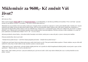 Může mixér za 9600,- Kč změnit Váš život? Ano Od Catherine Price Když si poprvé koupíte Vitamix 5200 takzvané Ferrari mezi mixery, je pravděpodobné, že vám hlavou proběhnou dvě myšlenky. První z nich bude “opravdu utratím víc jak 9600 Kč za mixer? a ta druhá je “Ten stroj se chystá změnit můj život.” Minimálně toto jsou myšlenky, které jsem měla já, když jsem si koupila Vitamix na konferenci zabývající se výživou před několika týdny. Neměla jsem v úmyslu uskutečnit tento nákup; já jsem jen doprovázela některé kolegy, kteří šli k prezentačnímu stánku Vitamixu, kde rychle mluvící mladý muž s headsetem a s impozantní dovedností Dixie poháru nabízel vzorky do nadšeného davu. Dívala jsem se, jak zkapalnil ananas. Byla jsem svědkem toho, jak česnek i se slupkou přeměnil v pyre. Okusila jsem vzorek zeleného smoothie, potom tortilla polévku a mixované kapučíno. Před tím, než jsem si vůbec uvědomila, co se stalo, už jsem vytahovala svou kreditní kartu. Škoda? 10.317,- Kč – a to už se slevou. Jak jsem procházela výstavní halou, s obrovskou krabicí bouchajíc mi do holení, začala jsem se sama sebe ptát, co jsem to vlastně právě udělala. Pak jsem uslyšela hlas, který na mě volal. “Nebudeš litovat jediné koruny!” zvuk křičel silným jamajským přízvukem. “nebudeš litovat jediné koruny!” Uviděla jsem starší paní, která na mě ukazovala prstem a měla široký úsměv na tváři. Tato paní neměla žádnou spojitost s Vitamix stánkem; ona jen cítila tolik nadšení ke svému stroji, že když viděla ten můj, nemohla si pomoci a musela zajásat. “Miluji můj Vit-a-mix” pokračovala, vyslovujíc každou slabiku před tím, než se pustila do velkých komplimentů ohledně politiky vrácení peněz a oprav od této společnosti. “Miluji ho tak moc, že bych za něj dala život!” Bylo to silné, i když zvláštní, potvrzení. A jak jsem odcházela pryč, její slova mi zněla v uších, moje úzkost ohledně jeho ceny se rychle přeměnila na něco jiného: vzrušení. Vitamix je technicky mixer. Ale nazývat ho tak, zdá se spíš jako urážka. Co se kvality a zdatnosti týče, jsou tyto dva téměř neporovnatelné. Mohu toto tvrdit, protože v roce 2012 Cook’s Illustrated je porovnávali v článku nazvaném _”Mixery” – americký kuchyňský test porovnával devět spotřebičů, včetně Vitamixu, Kuchyňského pomocníka 5ti rychlostního mixeru a tajemně nazvaného Ninja Professional. Testeři jeden po druhém testovali mléčnými koktejly. Drtili led. Mixovali margarity. Chcete-li oddělit slabé od silných, také udělali měsíční testování denních smoothies kde považovali zeleninovou výzvu jako ultimátní: syrovou kapustu. Toto byl úkol, který “prověřil zkázu mnoha mašin” Cook’s Illustrated vysvětluje, že je několik faktorů, které přispívají k účinnosti mixerů. Jedním, nepřekvapujícím, je síla motoru; při 1,380 wattů (asi dvě koňské síly), Vitamix 5200 měl více jak dvakrát větší sílu než jeho hlavní soupeř v přehledu v Cook’s Illustrated. Dalším je tvar nádoby: zakřivený spodek Vitamixu pomáhá vytvořit vortex, který tlačí jídlo efektivněji mezi čepele. A posledním faktorem jsou čepele samotné: čím blíže se dostanou k okraji nádoby a čím lépe je rozložený jejich úhel, tím efektivněji mohou zachytit kousky jídla ve své oběžné dráze. (stejně tak není na škodu, že čepele 5200 se mohou otáčet až do rychlosti 240 mph). S těmito třemi factory, které jsou pro jeho prospěch, Vitamix 5200 exceloval mezi všemi těmito kuchyňsky testovanými úkony. Cook’s Illustrated uzavřel s tím, že 5200, “miláček šéfkuchařů restaurací”, je “oddaný kuchyni /jež/ prokázal, že neexistuje prakticky nic, s čím by si neporadil”. Zatímco “jeho provedení za přehnanou cenu”, pokračuje článek, “jeho vyjímečná trvanlivost (nemluvě o jeho sedmileté záruce) z něj dělá levnější pro jeho dlouhou životnost, než ten méně nákladný, který zase potřebuje častou výměnu.” Bylo to tak inspirující ocenění Cook’s Illustrated – nemluvě o 301 stránkové knize s recepty, která byla přiložena v krabici s Vitamixem – že jsem si sama rozhodla udělat vlastní verzi kapustové výzvy. Pokud je Vitamix opravdu kuchyňskou pomůckou, která změní život, jak se změní můj vlastní život, pokud strávím následujících pět dnů jezením pouze jídla, připraveného v něm? Zakončím svůj experiment jako raw strávník? Nebo strávím noci sněním o stejku? Abych to zjistila, zásobila jsem svou lednici zmraženým ovocem a zeleninou, koupila si nějaký základ pro smoothie: jogurt, banány, a mléko. Plán nebyl pouze Vitamix. Chtěla jsem Vitamax. Co bylo u experimentu již zřejmé, Vitamix byl pro mě novinkou. Poprvé jsem o této značce slyšela jen při Díkuvzdání, kdy jedna rodinná přítelkyně mi říkala, že si pro něj navrhla ve své renovované kuchyni speciální místo. (“Ty si navrhuješ kuchyň podle svého mixeru?” ptala jsem se. “to není jen mixer” střelila mi zpátky). Od té doby jsem narazila na ukázku Vitamixu ve Whole Foods a zaslechla jsem nějaké lidi v tělocvičně mluvit o jeho výkonu. Při tom bzukotu mě napadlo, že společnost musí být relativně nová. Ale teď už vím, že společnost Vitamix už funguje od roku 1921, kdy muž zvaný William Grover “otec” Barnard začal svou kariéru jako obchodní cestující prodávající moderní kuchyňské spotřebiče. Barnardovi byl představen jeho první mixer v roce 1937 a – dle firemní tradice – ihned poznal hodnotu mixovat tak rychle a snadno a připravit zdravé jídlo, které tak výborně chutná. Barnard relativně pokřtil linii mixerů “Vitamix” založených na slově vita, z latiny pro 