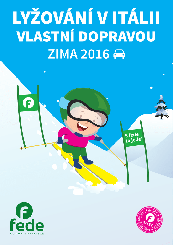 lyžování v itálii VLASTNÍ DOPRAVOU středisko zima 2016 www.fede.cz 1 Vážení klienti, naši milí lyžaři a přátelé zasněžených kopců, venku panují tropická vedra, tým CK FEDE v nich pro vás opět připravuje nový zimní katalog a při představě, že společně sjíždíme alespoň virtuálně zasněžené italské kopce, je nám celkem fajn. Připravili jsme pro vás hned několik novinek, které vás obohatí o nové sportovní i kulturní zážitky. První a důležitou informací pro vás, kteří máte rádi zájezdy autobusovou dopravou, jsou odjezdy téměř z celé České republiky. Snažíme se totiž vyjít vstříc všem klientům, kteří mají o tyto zájezdy zájem. Stálicemi naší bohaté nabídky jsou střediska Aprica, kde jsme zařadili nový hotel přímo u sjezdových tratí a středisko Livigno, kde v již známém hotelovém komplexu Alpen Village najdete nově rozšířený wellness program. Novinkou letošní sezony je autobusový zájezd do střediska Alta Badia, které je součástí světoznámého okruhu Sella Ronda. Hotel Planac*** uspokojí požadavky i těch nejnáročnějších klientů – hotel se nachází přímo u sjezdové tratě a nabízí příjemné wellness centrum. V neposlední řadě musíme zmínit další část okruhu Sella Ronda – lyžařskou oblast Val di Fassa, kde najdete nově vybudované spojení mezi Ciampac a okruhem Sella Ronda. Při této příležitosti bychom rádi upozornili na velmi nízké ceny v pensionu Soggiorno Dolomiti, který od loňského roku nabízí bohatou polopenzi bufetovou formou. Pokud máte již dnes chuť na brouzdání po zasněžených kopcích, byť jen virtuálně, můžete se s námi poradit při výběru a využít slevy 10% do 30.8.2015 Těšíme se na vaše požadavky a přejeme krásné letní dny. Kolektiv CK FEDE SLEVY úvodní slovo, slevy ČASOVÉ SLEVY: 2 VĚRNOSTNÍ SLEVY: 10% do 30. 8. 2015 při uhrazení 50 % ceny zájezdu 2% 2-3x účast na zájezdu 8% do 30. 9. 2015 při uhrazení 50 % ceny zájezdu 4% 4-6x účast na zájezdu 5% do 30. 10. 2015 při uhrazení 50 % ceny zájezdu 8% 7-9x účast na zájezdu OSTATNÍ SLEVY: 5% sleva pro seniory nad 60 let 5% sleva pro novomanžele 10% 10-13x účast na zájezdu 12% 14 a vícekrát účast na zájezdu Slevy se sčítají do max. výše 10%, pokud je věrnostní sleva vyšší než 10 % platí pro tento případ vyšší sleva. Výše uvedené slevy neplatí na SPECIÁLNÍ AKČNÍ NABÍDKY A LAST MINUTE NABÍDKY. www.fede.cz OBSAH 2 3 4 5 6, 7 8 9 9 10 11 11 12 12 13 13 13 14 14 15 16 17 18 19 19 20 20 21 22 22 23 23 24 25 25 Hotel Ansitz Jakoberhof **** - Ortisei Hotel Chalet Tianes **** - Castelrotto Hotel Alpino Plan *** - Selva Val Gardena Sporthotel Hell **** - Ortisei Hotel Antares ****/Rezidence Antares ***- Selva Val Gardena Hotel Olympia *** - Selva Val Gardena VAL DI FIEMME Hotel Villa di Bosco ***s - Tesero Hotel Lagorai **** - Cavalese Aparthotel/Rezidence Des Alpes *** - Cavalese Hotel Belaria *** - Predazzo Další nabídky na www.fede.cz Aparthotel Majestic *** - Predazzo Hotel Zanon *** - Ziano Hotel Rio Stava **** - Tesero Rezidence Lagorai - Tesero Rezidence Lagorai, Kristal, Color Home - Predazzo Hote/Clubresidence Veronza *** - Carano CIVETTA Rezidence Civetta - Pecol di Zoldo Další nabídky na www.fede.cz Rezidence Regina - Alleghe - Masaré Rezidence Valpiccola - Zoldo Alto Hotel Aleghe*** / Hotel Alle Alpi*** - Alleghe CORTINA D´AMPEZZO Hotel /Apartmány Fiori - S. Vito di Cadore Další nabídky na www.fede.cz Grand Hotel Misurina **** - Misurina Hotel Meublé Olimpia*** - Cortina d´Ampezzo Hotel Majoni **** - Cortina D´Ampezzo Další nabídky na www.fede.cz ALTA PUSTERIA Berghotel & Rezidence Tirol **** - Sesto Hotel/Rezidence Strobl *** - Sesto VALLE ISARCO Hotel Post *** In Bressanone Hotel Alpenfrieden *** - Maranza TRE VALLI Rezidence Casa Alessandra - Falcade Hotel Molino **** - Falcade SAN MARTINO DI CASTROZZA Rezidence Lastei *** - S.Martino di Castrozza Rezidence Relais - S. Martino di Castrozza SUPERSKIRAMA PASSO TONALE Hotel Locanda Locatori *** - Passo Tonale Hotely Delle Alpi ****- Passo Tonale Hotel Sciatori *** - Passo Tonale Rezidence Jolly and Spa **** - Ponte di Legno Rezidence Adamello Resort - Ponte di Legno Blu Hotel Aquaseria **** - Ponte di Legno Hotel Sciatori *** - Temú Hotel Edelweiss*** - Passo Tonale Další nabídky na www.fede.cz Hotel Gardenia *** - Passo Tonale Rezidence Top *** - Passo Tonale Rezidence Serodine - Passo Tonale Rezidence Al Maniero - Ponte di Legno Rezidence Ponte di Legno - Ponte di Legno Hotel Cacciatori *** - Temú FOLGARIA / LAVARONE Hotel Golf **** - Folgaria 25 26 26 27 28 28 29 29 29 30 30 30 31 31 31 31 31 31 31 31 31 32 33 33 34 35 36 37 37 38 38 Alpine Smart Residence ** - Folgaria MADONNA DI CAMPIGLIO / PINZOLO Rezidence Ambiez - Madonna di Campiglio Další nabídky na www.fede.cz Hotel Fioco di Neve*** - Pinzolo Rezidence Antares **** - Madona di Campiglio Rezidence Sporting Centro Vacanze - Pinzolo MARILLEVA / FOLGARIDA Rezidence Kristal - Marilleva 900 Další nabídky na www.fede.cz Hotel Sporting Ravelli ***s - Marilleva 900 Hotel Luna **** - Folgarida Rezidence Albaré *** -Mezzana Další nabídky na www.fede.cz PEJO Hotel Cristalo *** - Pejo Hotel Rosa degli Angeli*** - Pejo PAGANELLA Hotel Splendid *** - Andalo Rezidence Lambin - Andalo MONTE BONDONE Hotel Club Zodiaco Ski *** - Vanese Rezidence Cielo Aperto - Vason ALTA VALTELLINA LIVIGNO Hotel Alpen Village *** - Livigno Hotel Intermonti **** - Livigno Hotel Alaska *** - Livigno Hotel Garní Zodiac ** - Livigno Hotel Loredana ***/Hotel Sporting ** Livigno Hotel Amerikan **** - Livigno Hotel Paré *** - Livigno Hotel Lac Salin **** - Livigno Rezidence Adele ** - Livigno Apartmány JOLLY - Livigno Rezidence Casa Rosa - Livigno Apartmány ALPEN WHITE - Livigno Rezidence Chalet Beatrice/Menin - Livigno Další nabídky na www.fede.cz Hotel Teola ** - Livigno Hotel Helvet