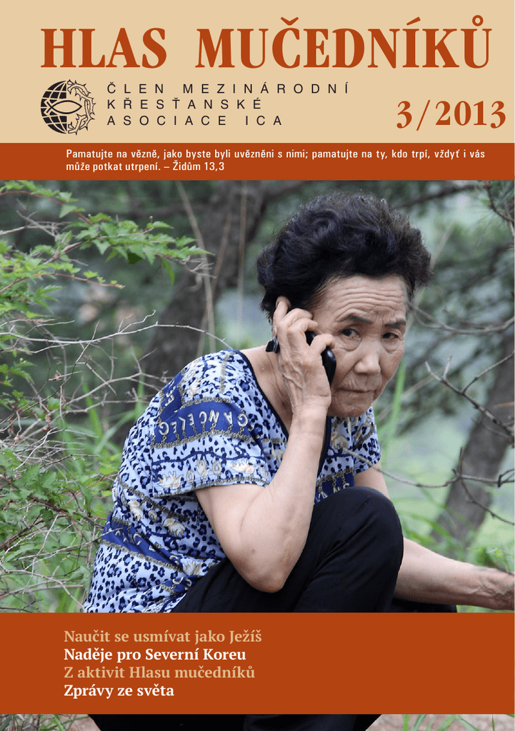 HLAS MUÈEDNÍKÙ Č L E N M E Z I N Á R O D N Í K Ř E S Ť A N S K É A S O C I A C E I C A 3 / 2013 Pamatujte na vězně, jako byste byli uvězněni s nimi; pamatujte na ty, kdo trpí, vždyť i vás může potkat utrpení. – Židům 13,3 Naučit se usmívat jako Ježíš Naděje pro Severní Koreu Z aktivit Hlasu mučedníků Zprávy ze světa N A K L A DAT E L S T V Í S T E FA N OS N A B ÍZ Í : Rasooli & Allan – Lékaø z Kurdistánu Pøíbìh o obrácení muslimského mullaha. A5, 134 stran, cena 77 Kè. Richard Wurmbrand – Vítìzná víra Inspirující ètení na téma køesanské víry a svìdectví. 12×18 cm, 176 stran, cena 120 Kè. Ken Anderson – Smìlý jako beránek ivotní pøíbìh známého èínského køesanského disidenta. A6, 170 stran, váz. 137 Kè. Pavel Rejchrt – Dvanáct kázání Sbírka kázání èeského malíøe, básníka a literáta z posledních deseti let, ve kterých se autor zamýšlí nad duchovní situací souèasného køesanstva i spoleènosti. Váz. broura, 14×19 cm, 96 stran, 147 Kè. John Bunyan – Milost pøehojná Duchovní autobiografie Johna Bunyana. 11,5×17,5 cm, 192 stran, cena 157 Kè. John R. Weinlick – Hrabì Zinzendorf ivotní pøíbìh hrabìte Mikuláše Ludvíka Zinzendorfa, nejvýznamnìjšího pøedstavitele Obnovené Jednoty bratrské. Vázaná broura, 12×19 cm, 232 stran, cena 175 Kè. Hermann Hartfeld – Víra navzdory KGB Autentické vyprávìní o pronásledování køesanù v Sovìtském svazu v šedesátých letech. 12×19 cm, 304 stran, cena 177 Kè. Richard Wurmbrand – Kristus na idovské cestì Autor sám idovského pùvodu uvauje na idovské téma. 12×18 cm, 248 stran, cena 175 Kè. Sam Wellman – William Carey Kniha o ivotì anglického misionáøe v Indii. Vázaná broura, 12×19 cm, 160 stran, cena 167 Kè. Hans Martin Braun – Let pøes hranice Napínavý román z prostøedí ruské podzemní církve se špioná�ní zápletkou. Vázaná, 11,5×17 cm, 120 stran, 2.vydání, cena 138 Kè Mike Fearon – Martin Luther Beletrizovaná biografie jedné z klíèových postav historie køesanství. Vázaná broura, 12×19 cm, 112 stran, cena 165 Kè. Anatolij Granovskij – Byl jsem agentem NKVD Memoáry agenta sovìtské tajné sluby, pùsobícího krátce také v pováleèném Èeskoslovensku. Vázaná s pøebalem, 12×19 cm, 288 stran, cena 245 Kè. Tom White – Akce Kuba Po sedmnácti mìsících vìzení na Kubì vypráví autor vzrušující pøíbìh církve trpící za „tøtinovou oponou“. A6, 230 stran, cena 83 Kè. Darlene Deiblerová-Roseová – Ve stínu vycházejícího slunce Podivuhodný pøíbìh americké misionáøky v japonském zajetí za druhé svìtové války. Vázaná s pøebalem, 12×19 cm, 288 str., cena 248 Kè. Richard Wurmbrand – Vìzeòské zdi kdyby promluvily Autorova kázání, sestavená na samovazbì, která jsou pozoruhodným a jedineèným dokumentem o hlubinách køesanské víry uprostøed nelidského teroru a zoufalství. Vázaná, 12×18 cm, 136 stran, cena 185 Kè. Sam Wellman – Jan Kalvín Biografie slavného reformátora. Vázaná broura, 12×19 cm, 160 stran, cena 225 Kè Bratr Andrew – Pašerákem ve slubách Nejvyššího Kniha popisuje zaèátky sluby bratra Andrewa. Díky této knize se mnozí západní køesané zaèali zajímat o utrpení svých spoluvìøících v totalitních zemích a mnohým rovnì pomohla nalézt víru v Jeíše Krista. Vázaná s pøebalem, 12×19 cm, 262 str., cena 245 Kè Nabízené knihy z nakladatelství STEFANOS si mùete objednat na naší adrese, uvedené na zadní stranì obálky. Poštovné ani balné není úètováno. Ukázky knih naleznete na internetové adrese www.hlas-mucedniku.cz) HLAS MUÈEDNÍKÙ 3 / 2013 FOTO NA PRVNÍ STRANĚ VAZBY: Hope Yoo evangelizuje obyvatele Severní Koreje pomocí kontaktní osoby, se kterou pravidelně hovoří mobilním telefonem v hraničním lese prostřednictvím čínského mobilního operátora. RICHARD WURMBRAND NAPSAL Naučit se usmívat jako Ježíš Hospodin mluvil k Menašemu a jeho lidu, ale ti mu nevěnovali pozornost… V nouzi prosil Hospodina, svého Boha, o shovívavost a hluboce se před Bohem svých otců pokořil. Modlil se k němu a on přijal a vyslyšel jeho prosbu… Tak poznal Menaše, že jenom Hospodin je Bůh. (2. Paralipomenon 33, 10; 12; 13) Drazí bratři a sestry, Menaše byl velmi špatným králem, a přesto i pro toho nejhoršího z lidí je otevřena brána v nebesích. Nejhorší lidé mohou přijít. Menaše je toho příkladem. V rumunském vězení se s námi vězni jednalo převelice špatně. Komunisti nás drželi v podzemních samotkách, které byly deset metrů po zemí. Jediná činnost, kterou jsme mohli provozovat, bylo tiše sedět a dívat se do jednoho místa na zdi. Byla období, kdy nám dávali k jídlu jeden krajíc chleba týdně. Kromě toho jsme dostávali polévku se slupkami z rajčat, nemytým zelím a dalšími podobnými „delikatesami“. A tak jsme jen seděli, civěli do zdi, přemýšleli a modlili se. Po letech strávených na samotce nás nakonec umístili na společné cely. Panovala tam velice depresivní atmosféra. Každý měl za sebou množství krutého mučení. Nikdo z nás nevěděl, co se děje s našimi rodinami. Měli jsme za sebou léta věznění a další léta v kriminálu před sebou. Mezi nám byl jistý židovský věřící jménem Milan Haimovici. Tento člověk byl opakovaně bit za údajně vykonané přestupky. Ve skutečnosti však spáchal přestupek jiný vězeň, ale Milan se přihlásil před vykonáním trestu místo pravého viníka a podstoupil bití za něho. Byl opravdovým vzorem křesťana. Jednou se rozvinula velká diskuze mezi Milanem Haimovici a jistým uznávaným vědcem, který byl s námi ve vězení. Tento člověk byl dříve členem vědecké akademie a byl to naprostý neznaboh. Milan samozřejmě nebyl na téže intelektuální a kulturní úrov