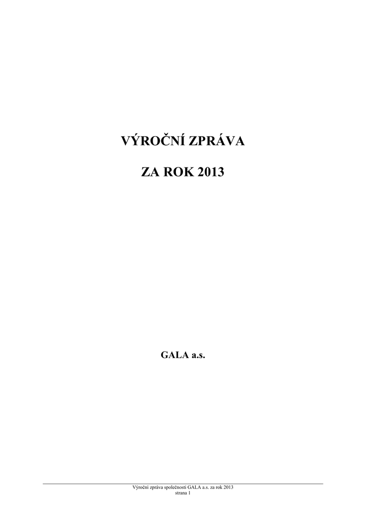VÝROČNÍ ZPRÁVA ZA ROK 2013 GALA a.s. Výroční zpráva společnosti GALA a.s. za rok 2013 strana 1 OBSAH ÚVODNÍ SLOVO ...................................................................................................................................................3 PROFIL SPOLEČNOSTI .......................................................................................................................................4 VRCHOLOVÉ ORGÁNY........................................................................................................................................5 ZPRÁVA O PODNIKATELSKÉ ČINNOSTI............................................................................................................6 ZÁKLADNÍ UKAZATELE .......................................................................................................................................9 NÁVRH PŘEDSTAVENSTVA NA ROZDĚLENÍ ZISKU ......................................................................................10 ZPRÁVA DOZORČÍ RADY..................................................................................................................................11 ZPRÁVA NEZÁVISLÉHO AUDITORA.................................................................................................................13 ROZVAHA ...........................................................................................................................................................15 VÝKAZ ZISKU A ZTRÁTY ...................................................................................................................................17 PŘÍLOHA ÚČETNÍ ZÁVĚRKY...........................................................................................................................18 ZPRÁVA O VZTAZÍCH MEZI PROPOJENÝMI OSOBAMI..................................................................................43 Výroční zpráva společnosti GALA a.s. za rok 2013 strana 2 ÚVODNÍ SLOVO Dámy a pánové, rok 2013 přinesl pro akciovou společnost Gala období řady vynikajících obchodních a ekonomických výsledků, intenzivní investiční činnosti a významných strategických rozhodnutí a událostí. Z pohledu dostupných dat rekordní tržby (232 mil. Kč), provozní hospodářský výsledek (11 952 tis. Kč) a EBITDA (17 618 tis. Kč) umožnily realizovat řadu investičních akcí, z nichž nejvýznamnější byla I. etapa projektu „Energeticko-tepelné zhodnocení hlavní výrobní budovy“, realizovaná v hodnotě 6,6 mil. Kč v letních měsících. Úspěšná implementace nového informačního systému VISION, zavedení certifikace společnosti dle ISO 14.000:2004 (systém managementu životního prostředí) a zejména příprava projektu „Přímé dodávky do firmy Stihl“ a následná přístupová jednání včetně opakovaných auditů společnosti, to byly klíčové faktory úspěšného vývoje v roce 2013. Vývoj prvních měsíců roku 2014 nás opravňuje doufat, že přes všechny negativní vnější vlivy se podaří pokračovat v nastoleném pozitivním a rozvojovém trendu řízení společnosti. Úspěšný vývoj a.s. Gala by nebyl možný bez vynikajících a dlouhodobě budovaných obchodních vztahů s našimi partnery a zejména bez vytrvalého pracovního nasazení všech zaměstnanců společnosti. Za obojí je potřeba na tomto místě upřímně poděkovat. Mgr. Michal Preininger Předseda představenstva Výroční zpráva společnosti GALA a.s. za rok 2013 strana 3 PROFIL SPOLEČNOSTI obchodní firma: GALA a.s. právní forma: akciová společnost datum vzniku: 1.ledna 1994 sídlo: Západní 75, 797 32 Prostějov Krasice č.p. 1 IČ: 49969820 základní kapitál: 47 990 250,- Kč Výroční zpráva společnosti GALA a.s. za rok 2013 strana 4 VRCHOLOVÉ ORGÁNY Představenstvo Mgr. Michal Preininger - předseda Ing. Otakar Kukla - člen Ing. Otakar Kukla - člen Dozorčí rada Eleonora Janoutová - předseda Ing. Pavel Ogoun - člen Vlastimila Bezděková - člen Management Mgr. Michal Preininger - generální ředitel Ing. Otakar Kukla - ekonomický ředitel Alena Grmelová - manažer exportního prodeje Bohuslav Vičar - manažer tuzemského prodeje Zuzana Lukešová - manažer nákupu Ing. Hana Valoušková – manažer kvality Martin Hejda - manažer vývoje Ing. Marie Ženožičková – manažer TPV Ing. Anna Hubálková - manažer výroby Ing. Světlana Bernkopfová - manažer výroby Miroslava Pospíšilová - manažer výroby Výroční zpráva společnosti GALA a.s. za rok 2013 strana 5 ZPRÁVA O PODNIKATELSKÉ ČINNOSTI Obchodní a ekonomické výsledky společnosti daleko předčily očekávání plánu a dosáhly rekordních hodnot. Při celkových tržbách ve výši 232 milionů Kč byla vyprodukována přidaná hodnota 88 535 tis. Kč ( 339 tis. Kč na pracovníka), provozní hospodářský výsledek ve výši 11 952 tis. Kč a EBITDA 17 618 tis. Kč. K těmto výsledkům přispělo i výhodné zajištění kurzu koruny k euru na úrovni 29,65, které však posledním rokem tranše (2011-13) skončilo. Nové zajištění forwardovými operacemi pro roky 2014 a 2015 na hodnotách kolem 25 Kč za euro bylo znehodnoceno rozhodnutím České národní banky o faktické devalvaci koruny a mírné ztráty z něho plynoucí musely být vyvažovány zvýšenou tvorbou rezerv. Z tohoto důvodu dosáhl celkový hospodářský výsledek společnosti před zdaněním „pouze“ 1,13 mil. Kč. Významná investiční aktivita společnosti směřující k celkové modernizaci areálu pokračovala kromě relativně drobnějších akcí (opravy střech a podlah, vodoinstalace) zejména realizací 1. etapy projektu „Energeticko-tepelné zhodnocení hlavní výrobní budovy a.s. Gala“ ve výši 6,6 mil. Kč. Tato akce představovala mj. kompletní výměnu oken ústřední pětipodlažní budovy areálu, výměnu hlavních dveří v jednotlivých p
