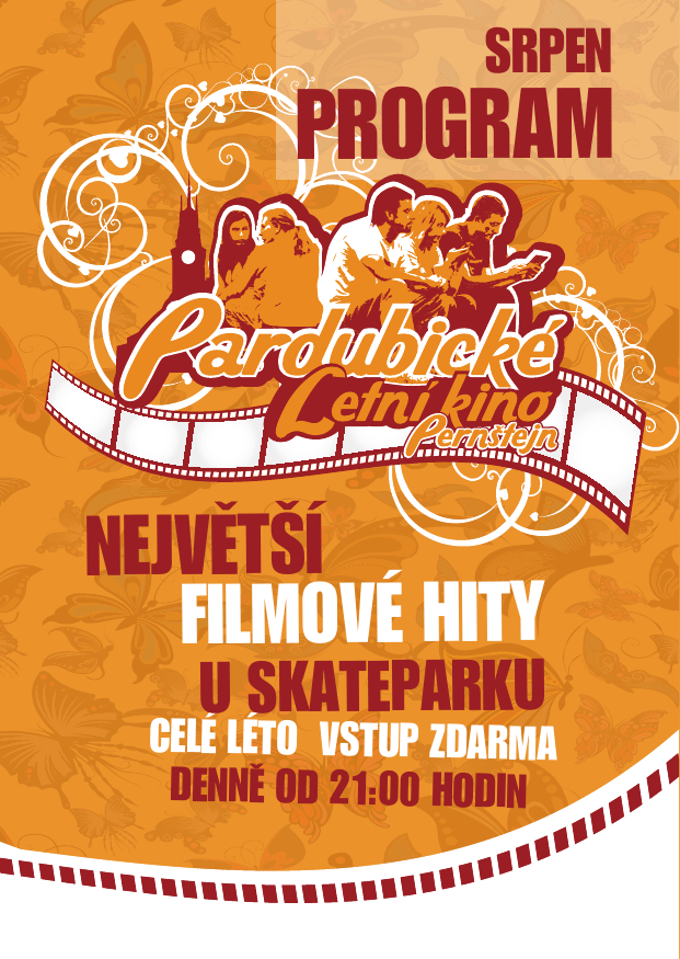 SRPEN PROGRAM NEJVEˇ TŠÍ FILMOVÉ HITY U SKATEPARKU CELÉ LÉTO VSTUP ZDARMA DENNE OD 21:00 HODIN RÁZDNINOVÝ VE ER Vážení přátelé dobrých filmů a letní pohody, Říká se, že nejlepší odměnou pro člověka je pocit z dobře vykonané práce. Souhlasím. Nedávno mne však zaujala věta, kterou jsem si přečetl v jedné pomaturitní anketě, když se novináři ptali studentů, co chtějí po maturitě dělat. Odpověď zněla: „Ještě nevím. Ale chtěl bych dělat něco, z čeho by lidi měli radost.“ Z úst mladého člověka mne to docela překvapilo. V dnešní době, kdy mnozí lidé přemýšlí pouze o svých vlastních problémech, se najde mladý člověk, který především myslím na jiné. Co mají moje úvahy společného s pardubickým letním kinem? Právě tu radost. Léto bývá okurkovou sezonou, když to jde, hledáme potěšení v cestách k moři, někteří možná i na horách, případně na chatách a chalupách. Ale co my, lidé městští, kteří nemáme kam odjet? Přes den nám zbývá koupaliště, případně zahrádky u příjemných malých hospůdek. A ejhle, najednou se před několika lety objeví skupinka lidí, která si usmyslí dělat lidem radost tím, že jim nabídne pro teplé letní večery zábavu v podobě přírodního kina. Pardubické letní kino se záhy stalo fenoménem, známým po celé republice. Přesto hrozilo nebezpečí, že se letos promítat nebude. Ať už byly důvody jakékoli, jsem rád, že se nakonec podařilo všechny překážky, skutečné i uměle vytvořené, překonat. Škarohlídům to možná nebude milé. Ale já chci právě proto poděkovat „bláznům“, kteří chtějí dělat něco, z čeho by lidi měli radost. Jan Tichý náměstek hejtmana pardubického kraje. jsem velmi rád, že Vás mohu pozvat na filmové léto pod širým nebem. Po komplikacích provázejících rozhodování o letošním provozu letního kina si díky nadšení provozovatelů a podpoře města od července budete moci opět, již po sedmé, vychutnat kvalitní filmy v neopakovatelné atmosféře vytvořené samotnou přírodou. Doufám, že vám tyto filmové produkce, stejně jako v minulých letech, zpříjemní léto, zpestří vaše večery a příjemně oživí kulturní život v Pardubicích. Letní kina bývala dříve nedílnou součástí prázdnin a léta vůbec a je jistě potěšující, že se tato tradice pomalu vrací. Právě Pardubice a parta nadšenců, kteří se rozhodli v našem městě na tradici letního kina po letech navázat, jsou v tomto do určité míry průkopníky. Již první ročníky, které se setkaly s nadšeným ohlasem diváků, totiž ukázaly, že myšlenka na filmovou produkci v přírodě vůbec není mrtvá. Dnes je letní kino Pernštejn fenoménem pardubického kulturního léta a desetitisíce spokojených diváků, které kinem v minulých letech prošly, jsou důkazem toho, že pro město je podpora kina dobrou investicí. Letos byla příprava prázdninového promítání poněkud komplikovanější než v minulých letech. Tyršovy sady se připravují na rekonstrukci a najít pro kino nové vhodné místo nebylo jednoduché. K radosti Vás diváků se nakonec vše podařilo a já doufám, že se sedmou sezonou budete stejně spokojeni jako s těmi minulými. Věřím, že organizátoři měli, stejně jako v předchozích letech, šťastnou ruku při výběru filmových titulů. Přeji Vám mnoho krásných zážitků a hvězdné nebe jak při návštěvách letního kina, tak při Vašich prázdninových toulkách. František Brendl náměstek primátorky města Pardubic Vážení návštěvníci a příznivci filmového umění. Dovolte mi, abych Vás jménem městského obvodu Pardubice I přivítal v letním kině u Skate Parku. Nikdy v předchozích letech nebylo na jaře tolik nejasností kolem konání letního kina v tradičních prostorách Tyršových sadů jako letos. Spolu s hlavním organizátorem jsem věnoval značné úsilí tomu, abychom nezklamali návštěvníky letního promítání a ojedinělá tradice zůstala zachována. Celý problém vznikl tím, že naše město připravilo v roce 2011 projekt Revitalizace Tyršových sadů. Při realizaci tohoto projektu bude možno využít prostředků z evropské unie a je tedy šance konečně tento prostor zkultivovat a upravit tak, aby se stal zelenými plícemi i srdcem centrální části našeho města. Někteří pardubičtí občané ekologického zaměření ale s rozsahem projektu nesouhlasí. Od podzimu 2011 se tak vedly diskuze mezi zastupiteli města a ekology, zda revitalizace parku ano či ne. Zastupitelstvo města až dne 26.6.2012 rozhodlo o okamžité zahájení revitalizace Tyršových sadů a tak jsme s provozovatelem vybrali tuto náhradní lokalitu. Doufám, že i v těchto náhradních prostorách bude promítání přinášet radost Vám všem milovníkům filmů a romantiky. Věřímpevně, že se letní kino po rekonstrukci Tyršových sadů opět vrátí na tradiční místo v zeleném centrálním parku našeho městského obvodu Pardubice I. Našemu letnímu kinu přeji krásné počasí, mnoho spokojených návštěvníků a i do budoucnosti pevné místo v kulturním životě Pardubic. FINET spol. s r.o. Vzorková prodejna, Pernštýnská ulice 8, Pardubice info@finet-vino, www.finet-vino.cz ˇ PARTNER TRADICNÍ PARDUBICKÉHO LETNÍHO KINA Signál Půlnoc v Paříži Poklidnou idylu rázovité vesničky, která je tak trochu odříznutá od světa, nečekaně rozčeří sympatičtí mladíci Kája (Kryštof Hádek) a Filos (Vojta Dyk). Přijeli prý proto, aby vyhledali nejlepší místo pro instalaci nového mobilního vysílače. Vidina zisku vzbudí v místních pochopitelné očekávání, zvláště když se dozvědí o zajímavé finanční odměně pro majitele pozemku, na kterém bude vysílač stát. Vesnice se rychle stává bitevním polem a to s vyu