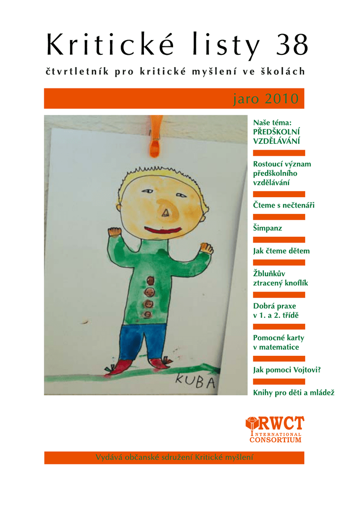 Poslání Kritických listů Kritické listy podporují otevřené společenství vzdělavatelů, kteří metodami aktivního učení dosahují všestranných a trvalých výsledků ve vzdělávání žáků, rozvíjejí u nich zvídavost a lásku k vědění a pěstují v nich bytostnou odpovědnost za svět, v němž společně žijí. Kritické listy nabízejí náměty pro výuku, která vede žáky ke kritickému a tvořivému myšlení, k schopnosti řešit problémy, spolupracovat, rozvíjí u dětí sebeúctu a současně respekt k druhým. Zvláštní pozornost věnují Kritické listy čtení, psaní a diskusi, které považují za účinné nástroje poznávání vnitřního i vnějšího světa a udržování demokracie. Kritické listy se zaměřují na pedagogy všech typů a stupňů škol a všech aprobací, kteří trvale rozvíjejí své profesní dovednosti, reflektují svou práci a jsou ochotni se o její výsledky podělit s ostatními. Kritické listy vznikly v roce 1999 jako čtvrtletník pro účastníky a absolventy programu Čtením a psaním ke kritickému myšlení. Přinášejí kompletní popisy vyučovacích jednotek rozmanitých předmětů, které v praxi uskutečnili učitelé se svými žáky, i obecná zamyšlení nad pedagogikou a školstvím. V současné době rozšiřují své publikum na všechny vzdělavatele, kteří přispívají k úspěchu kurikulární reformy v ČR. Vzhledem k tomu, že budu poprvé v životě učit prvňáčky, zajímaly by mne zkušenosti ostatních učitelů s použitím metod KM právě u prvňáků. Jsem nějak v koncích. Nesmírně si vážím vaší práce a KL mi pomáhají v běžných školních situacích. Netrpělivě čekám na další čísla. Texty nabízím kolegům – jdou v oborech „na dračku“. Líbí se mi, že KL nejsou jednostranné. Z ankety o KL KRITICKÉ LISTY – 38/2010 OBSAH Úvodník Naše téma: PŘEDŠKOLNÍ VZDĚLÁVÁNÍ Nejen v České republice, ale i jinde v Evropě a ve světě se odborníci už dlouhou dobu přou, zda má být předškolní vzdělávání přípravou na školu nebo zda máme tyto prvky z mateřských škol odstraňovat a rozvíjet herní aktivity dětí, které jim umožní rozvíjet se spontánně a přirozeně. Přestože se zdá, že jsou tyto koncepty vzdělávání zásadně odlišné, je možné najít i kompromisní způsob vzdělávání předškoláků. Respektovat individuální vývoj každého dítěte a nabízet mu takové činnosti, ke kterým je vnitřně motivováno a které mu pomohou osvojit si důležité dovednosti pro budoucí učení. Vytvářet přirozené prostředí, podněcující ke hře, během které budou děti předstírat, že čtou a píšou. Když si budou hrát na doktora, budou mít k dispozici vybavenou ordinaci: nejen doktorský kufřík s teploměrem a stetoskopem, ale i formuláře receptů, tužky, razítka, telefon, psací stroj či počítač. Copak existuje lékař, který by toto všechno nepotřeboval? Když si budou hrát na železniční nádraží, budou mít po ruce nejen čepici průvodčího, píšťalku, ale i jízdní řád a lístky. Když se ocitnou na chvilku v obchodě, budou vybaveny nejen funkční váhou a umělohmotným (případně i skutečným) ovocem, ale i kasou, která vydává účtenky, razítkem a penězi. Děti se učí nenásilně a samy, že čtení, psaní a schopnost komunikace jsou v dnešním světě klíčové dovednosti, bez kterých se prostě neobejdeme. Tištěné texty jsou všude kolem nás a děti jsou podněcovány k tomu, aby je „četly“ a také aby „psaly“. Úvodník, K. Šafránková Čtení a psaní dětí v mateřských školách není většinou opravdové. I tříleté děti jsou však schopny psát některá tiskací písmena, opsat, později i samostatně zapsat své jméno. I čtyřleté děti dokážou číst nápisy nad obchody či jiná známá slova. I mezi nimi jsou nadprůměrně inteligentní děti, které už samy čtou. Nejen tyto děti budou profitovat z toho, když i paní učitelka bude často psát a číst, bude dětem modelovat všechny čtenářské strategie a bude na ní vidět, že má ze čtení potěšení a z psaní užitek. Klíčem k úspěchu v životě je vzdělání a klíčem ke vzdělání je schopnost číst s porozuměním a zapsat své myšlenky a potřebné informace. Pokud se naše děti nenaučí zpívat, kreslit nebo cvičit, což jsou nejčastější činnosti, které v MŠ trénují, bude to jistě škoda a jejich talent se možná patřičně nerozvine. Pokud však nebudou schopny číst a psát (nebudou čtenářsky gramotné), budou handicapované na celý život. I když si děti techniku čtení a psaní osvojují až v 1. třídě, můžeme u nich už v předchozím období pěstovat kladný vztah a přístup ke čtenářství a „písmáctví“. Času není nazbyt. Podle některých výzkumů jen do osmi let věku dítěte. Pokud si do té doby neosvojí potřebné čtenářské techniky, zvyky, strategie, dovednosti a pozitivní postoj ke čtení, je odsouzeno k tomu, že bude neustále o krok pozadu za spolužáky, kteří pocházejí z podnětnějšího rodinného prostředí či z lepší mateřské nebo základní školy. Kateřina Šafránková 3 Rozhovor Rozhovor s Radanou Sedláčkovou, majitelkou nakladatelství Thovt, K. Šafránková. . . . . . . . . . . . . . . . . . . . . 4 K úvaze Rostoucí význam předškolního vzdělávání, J. Straková . . . . . . . 6 Možnosti a meze odborných praxí studentů učitelství, O. Hník . . . . . . . . . . . . . . . . . . . . . . . . . . . 9 Interaktivní výukové metody v matematice, E. Vulaová . . . . . . . 11 Lekce a komentáře Čteme s nečtenáři, K. Šafránková . . . . . . . . . . . . . . . . . . . . . . . Šimpanz, K. Krüger, K. Šafránková . . . . . . . . . . . . . . . . . . . . . . Jak čteme dětem, N. Tuháčková . . . . . . . . . . . . . .