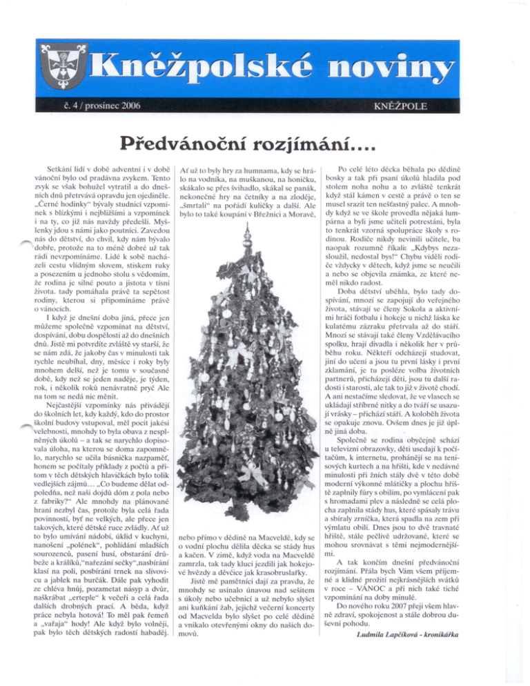teni ového klubu za odvedenou práci a nám všem, kněžpolským občanům popřát lá kypLné prožití vánočních svátků