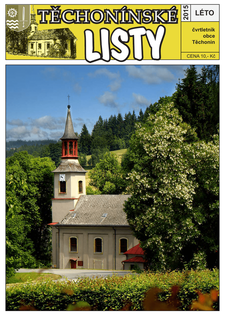 LISTY 2015 T Ě CH ONÍ NSK É LÉTO čvrtletník obce Těchonín CENA 10,- Kč Slovo redakce Vážení občané, od samého počátku vydávání Těchonínských listů Vám byly poskytovány v těchto listech ze všech veřejných jednání zastupitelstva obce pravidelně informace, které jsem připravoval. Snažil jsem se o to, aby podané informace byly občanům srozumitelné, byly podrobné, věcné, pravdivé a přiblížily průběh jednání zastupitelstev občanům, kteří nebyli na jednání přítomni a především pak těm, kteří se z důvodu věku nebo onemocnění nemohou jednání zastupitelstev zúčastňovat vůbec. Pokládám za důležité připomenout, že informační blok byl nazván „ Z jednání zastupitelstva obce“ a ne „Zápis z jednání zastupitelstva“, že bylo uváděno - zastupitelstvo obce schvaluje, zamítá nebo bere na vědomí a ne „Usnesení z jednání zastupitelstva“. Pod texty z jednání zastupitelstva obce nebyla uváděna jména starosty ani místostarosty obce. Odpovědný za texty je tedy ten, kdo je pod nimi uveden. To je totiž dost podstatné, protože je z toho zřejmé, že nejde o dokument oficiální. Chci jen připomenout, že tento způsob podávání informací z jednání zastupitelstev není zcela nový. Obdobným způsobem, ale ne tak obsáhlým, byli před lety občané obce již informováni v novinách Nové Králicko, pokud vycházelo. Dopisovatelem do těchto novin jsem tehdy já nebyl. Zdůrazňuji a ubezpečuji Vás, vážení občané, o tom, že informace z jednání zastupitelstev obce byly k projednávaným bodům programu každého zasedání a k tomu, co bylo řečeno v rozpravě. Rozprava je vždy tou zajímavější částí jednání zastupitelstva, protože na projednávané body se mohou vyskytnout a také se občas vyskytují rozdílné názory a zapojují se do ní zastupitelé a někdy i občané. Také tyto názory byly spolu s připomínkami a náměty uváděny a nebyl důvod je neuvádět, když byly vyřčeny na veřejném a všem občanům přístupném zasedání zastupitelstva. Bylo také uváděno, kolik zastupitelů bylo pro schválení návrhu k určitému projednávanému bodu, kolik zastupitelů se hlasování zdrželo a kolik zastupitelů bylo proti přijetí předkládaného návrhu. Dokonce se domnívám, že by se mělo uvádět jmenovitě, kdo a jak ze zastupitelů pro určitý návrh hlasoval, pokud není hlasování tajné. Vážení občané, toto vše uvádím proto, že již v těchto ani dalších Těchonínských listech informace z jednání zastupitelstev obce předkládat nebudu. Rozhodl jsem se k tomu na jednání zastupitelstva obce v měsíci dubnu po rozpravě, které předcházelo sdělení pana starosty obce, že v textu z jednání zastupitelstva obce v měsíci březnu bylo chybně uvedeno finanční překročení na akci „ Výměna vchodových a bočních dveří“ u bytových domů čp. 178,179 a 180. Uvedeno bylo 7 tis.Kč, skutečnost byla 5 700 Kč. Myslím, že nejde o žádnou tragedii a dodatečně se za tuto nepřesnost omlouvám. I když jsem nebyl zasypán konkrétními a věcnými připomínkami k dosavadnímu způsobu podávání informací z jednání zastupitelstva obce od zastupitelů a přítomných občanů, tak chápu, že ne všem vyhovoval. Ještě několik informací. V tomto čísle je poprvé uvedeno INFORMAČNÍ OKÉNKO, které bude uváděno i v číslech příštích. Budou v něm sdělovány změny ordinačních hodin, otevírací doby v obchodech, změny v jízdních řádech a další informace užitečné pro občany. Nebudou zde uváděny informace inzertní povahy. Od příštího čísla se budete moci v TL postupně seznamovat se znaky měst okresu Ústí nad Orlicí a okolních obcí. Bližší seznámení s nimi může být docela zajímavé. Vážení občané a čtenáři TL, příští, v pořadí již šestnácté vydání TL, bude v úterý 29. září. Termín dalšího vydání bude vždy uveden, ale z technických důvodů to bude spíše koncem měsíce. Děkujeme Vám za přízeň a těšíme se na Vaše příspěvky do TL Podzim 2015. Užijte si všichni pěkně léto, dovolenou a děti školní prázdniny. Karel Vencl Foto na obálce: Kostel svaté Markéty v Těchoníně (foto: Josef Sedláček ml.) 2 Pár řádků od starosty Vážení spoluobčané, slunečné dny vybízející k letním radovánkám, výletům a dovoleným jsou tady. Než se tedy všichni rozutečeme, připomeňme si ve zkratce alespoň pár základních údajů. V osazenstvu zastupitelů naší obce došlo k 1. červnu ke změně. Na základě žádosti paní Mgr. Lucie Šmahelové byl uvolněn a v zápětí přidělen mandát dle řádných voleb prvnímu náhradníku kandidátky Sdružení nezávislých kandidátů II. panu Janu Leichtovi, který na mimořádném zasedání dne 1.června složil slib. Společnost Vodovody a kanalizace Jablonné nad Orlicí, a.s. na přelomu května a června v Celném vyměnila vodovodní řad úseku orientačně dlouhém 300 m. Tento úsek si pro své časté opravy výměnu již opravdu zasloužil. Pak bude samozřejmě následovat realizace nového asfaltového povrchu v celé šíři vozovky, a to až po dostatečném sednutí zeminy výkopů. To znamená buď na podzim, nebo na jaře. Co se týká akce Zastřešení budovy školní jídelny, proběhlo výběrové řízení, na jehož základě zastupitelstvo obce odsouhlasilo společnost STAPO spol. s r.o., Ústí nad Orlicí jako dodavatele, který by měl zakázku provést v období letních prázdnin. Jen připomenu, že se tato společnost v roce 2011 zdárně zhostila realizace zastřešení budovy mateřské školy. Údržby zeleně ve středu obce, která byla realizována v roce 2014, se ujali místní občané, kterým za to patří dík. Jedná se o odplevelení, doplnění kůry, a to nemalých ploch. Tady je vidět, že nám opravd