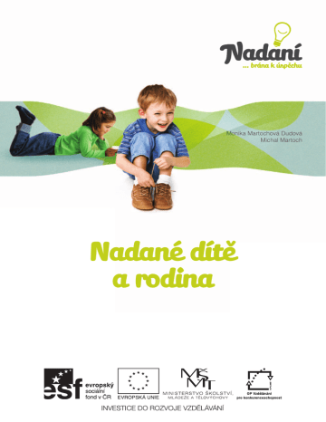 Monika Martochová Dudová Michal Martoch Nadané dítě a rodina NADANÉ DÍTĚ A RODINA Monika Martochová Dudová Michal Martoch “Tato práce mohla vzniknout pouze díky dnešním moderním technologiím, jež nám otevřely bránu k myšlenkám a výsledkům práce desítek “osvícených” lidí z celého světa, kterým není lhostejná budoucnost nás všech. Jen si představme svět, kde každý využívá své skutečné nadání pro dobro své i celého lidstva!” Obsah 1. Úvod a cíl studie 2 3.3.1. Motivace = plynutí 8 3.3.2. Vnitřní a vnější motivace 8 2. Co je to výchova? 2 3.3.3. Význam a důsledky odměn 9 2.1. Vychováváme tak, jak jsme byli vychováni 2 3.3.4. Vybudování motivace u dětí 9 2.2. Vliv výchovy na osobnost dítěte 3 3.4. Výchova bohatých x výchova chudých 10 2.3. Výchova jako hra 3 2.4. Rozdílný přístup k výchově západ versus východ 4 4. Dotazníkové šetření v rodinách s nadanými dětmi 14 4.1. Otázky z výzkumného šetření 14 5. Výsledky dotazníkového šetření 15 Vyhodnocení 18 3. Vliv rodiny na talent/nadání 4 3.1. Talent rodičů a jeho vliv na rozvoj nadání dětí 5 3.1.1. Pomoc rodičů při hledání životního povolání 5 3.1.2. Rodiče, dítě a nadání 5 3.2. 6 Zodpovědnost rodičů x zodpovědnost školy 6. Závěr 19 3.2.1. Zodpovědnost rodičů 6 Internet 20 3.2.2. Zodpovědnost institucí 7 Knihy 20 3.2.3. Závěr 8 3.3. 8 Motivace dětí 1 1. Úvod a cíl studie Podívejme se teď na formální definici výchovy: Předmětem této studie je poskytnout ucelený pohled na téma práce s nadáním dětí v rodinách jako základ pro jejich další rozvoj. Pro získání informací přímo od rodičů bude také zpracováno dotazníkové šetření. „Výchova je cílevědomá, plánovitá a všestranná činnost směřující k přípravě člověka pro jeho společenské úkoly a osobní život. Výchova je celoživotní působení na procesy lidského učení a socializaci s cílem přeměny člověka po všech stránkách, tedy tělesné i duševní. Výchova je zprostředkování znalostí, dovedností a postojů (kompetencí), které jsou přítomny v dané společnosti a které se pokládaly a pokládají za důležité, jejich předání dalším generacím. Různé koncepce výchovy byly v čase ovlivněny sociokulturními podmínkami a odlišnými koncepcemi chápání člověka.“ Cílem studie je: ○ definovat, co je to výchova jako hlavní zdroj rozvoje každého dítěte ○ zmapovat, jaký vliv má rodina na rozvoj nadání dítěte, a to na základě aktuálních vědeckých poznatků ○ zjistit pohled na nadání jejich dětí, které byly diagnostikovány jako nadané, přímo od rodičů pomocí dotazníkového šetření ○ porovnat základní rozdíly mezi tím, jak vychovávají a vzdělávají děti bohatí a jak chudí Tato striktně vědecká definice je jednou z mnoha, jež nalezneme v každé literatuře zabývající se výchovou. Ať už se zdá toto vysvětlení jakkoliv komplikované, většina definic alespoň zčásti vychází z podobných myšlenek. Nicméně málo z nich popisuje výchovu jako nekonečnou cestu, která nemá začátek ani konec, neboť začala v dobách, odkdy lidé žijí na Zemi, a bude pokračovat, dokud na Zemi budou žít lidé, kteří budou plodit děti, jež budou dalšími články v tomto nikdy nekončícím koloběhu života. Při šetření se bude vycházet z volně dostupných údajů publikovaných na webu, v knihách a dokumentech relevantních národních institucí, nestátních organizací a vzdělávacích institucí, z šetření zahraniční organizace Gallup, z literatury věnující se oblasti talentu a z interního dotazníkového šetření mezi rodiči, jejichž děti jsou zapojeny v projektu „Nadání… brána k úspěchu“. Výstupy studie by měly sloužit jako: ○ soubor informací sesbíraných z různých zdrojů pro pracovníky organizací zájmového vzdělávání a NNO, jež se zaměřují na práci s MND ○ inspirace při hledání řešení v ČR ○ k podpoře a rozvoji aktivit pro nadané v ČR s důrazem na hledání efektivních přístupů, dílčích i systémových řešení vhodných k diskusi či hlubšímu studiu V tomto pojetí je možné výchovu definovat takto: „Výchova je přirozený, intuitivní proces, jehož kořeny vzniku se táhnou do nedosažitelné hloubky. Jedná se o cestu, kterou by měli rodiče nebo jakýkoli jiný dospělý následovat pří výchově dítěte proto, aby obě strany, tedy dítě i dospělý, byly šťastní a spokojení. Důležitou součástí výchovy je uvědomění, že dítě se narodí jako velmi čistá, citlivá a vnímavá bytost a velmi záleží na tom, jestli rodiče a okolí dokáží svou výchovou jeho vlastnosti rozvinout pozitivně, nebo je v něm necitlivě nadobro zadupat či zastrašit. Dítěti je třeba dát možnost plně rozvinout celý jeho potenciál, celou jeho osobnost. Cesta, jak to udělat, je velice jednoduchá, stačí mu jít svým příkladem a žít tak, jak chceme, aby jednou žilo ono.“ 2. Co je to výchova? „Co je to výchova?“ Jednoduchá otázka, kterou si klade skutečně jen velice málo lidí. Přitom právě její zodpovězení je naprosto klíčové při formování osobnosti každého člověka. Lidé totiž automaticky přebírají vzorce z prostředí, ve kterém vyrůstali, a na jejich základě pak formují svá vlastní pravidla, podle nichž se musí řídit právě jejich děti. Toto jsou principy, kterými se dnes nechává vést většina populace, a je jen málo těch, kteří by si uvědomovali, že ve výchově hraje především klíčovou roli dítě. Bohužel, nedostatečná informovanost o výchově často způsobuje, že mnoho dětí vyrůstá v rodinách, v nichž rodiče nemají dostatečné znalosti ani zázemí k tomu, aby byly schopny svým dětem poskytnout vše potř
